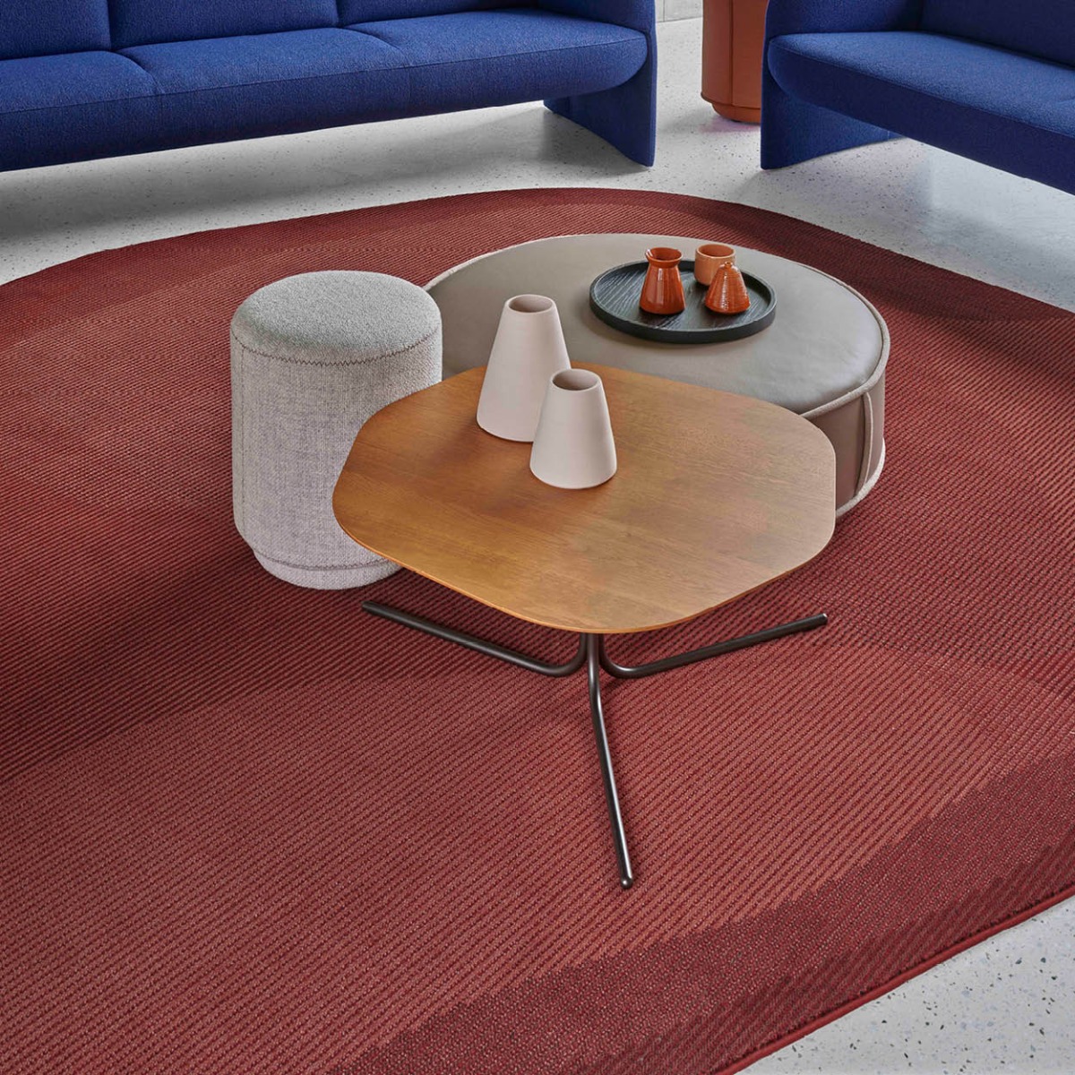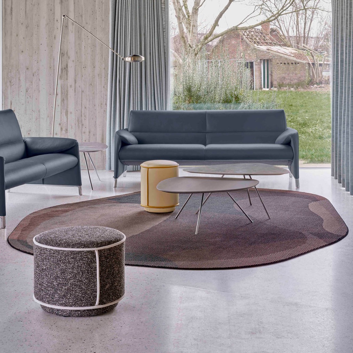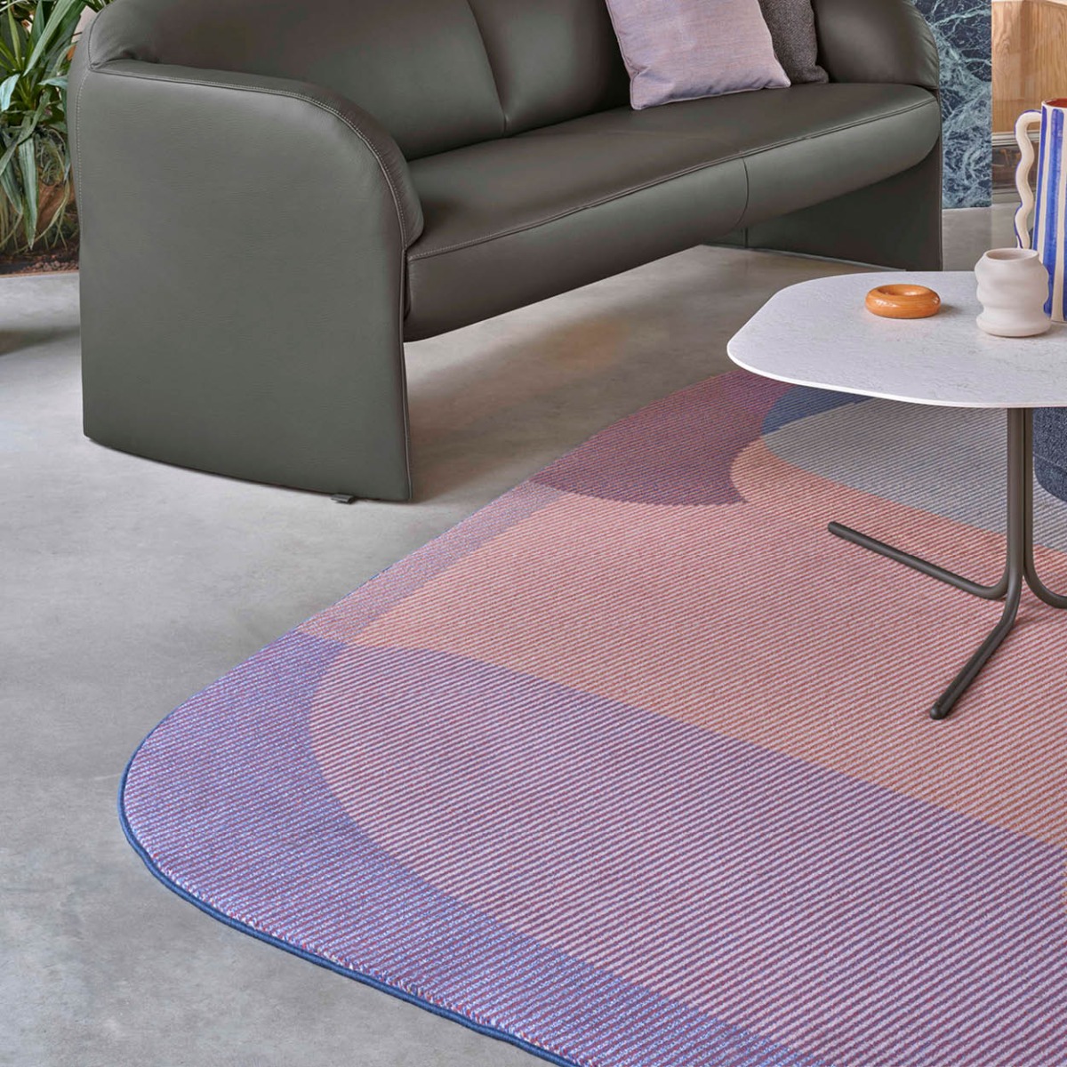 De Leolux Foliage Karpetten, ontworpen door Studio Truly Truly, zijn geïnspireerd op de natuur: zon, wind en wolken vormen steeds wisselende kleuren, schaduwen en composities. Dit zie je terug in de organische vormen en subtiele strepen van het complexe kleurpatroon. Geweven van 100% wol en verkrijgbaar in een bijzondere ronde vorm, zijn er vier uitvoeringen: Temporate (warmrood), Boreal (rood/paars/blauw), Marquis (donkerbruin) en Primas (oudblauw/grijs). Kom het karpet bewonderen in de Leolux Select store Benthuizen.