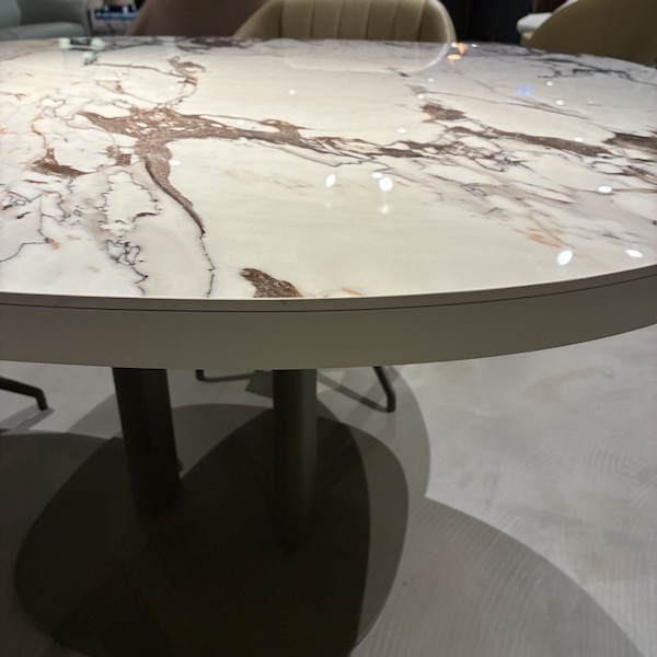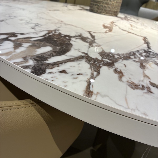 De Leolux Toveri eetkamertafel met keramiek Capraia blad is een compacte eettafel met een uitgesproken, luxe uitstraling. Dankzij de zachte vierkante ronde vorm oogt de tafel vriendelijk in de ruimte, terwijl het lichte keramieken blad met grijs- en bruintinten juist een chique en verfijnd accent geeft. Dit is zo’n tafel die een woonkeuken direct meer allure geeft, zonder overdreven groot te zijn. Perfect voor wie houdt van een stijlvolle, luxe sfeer in huis. Nu met outlet korting beschikbaar in onze showroom.