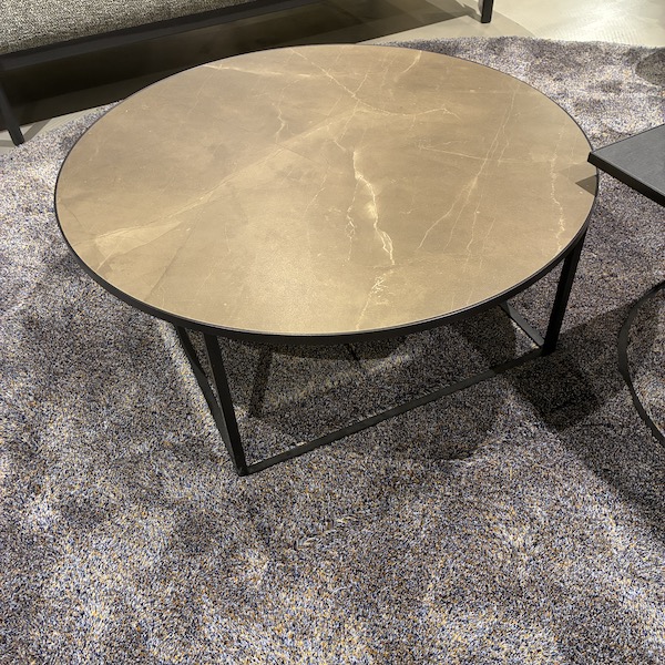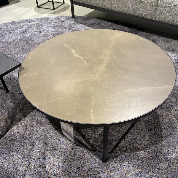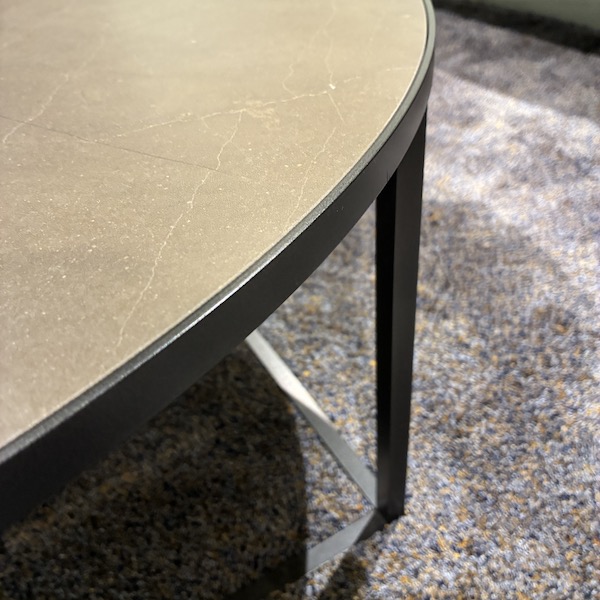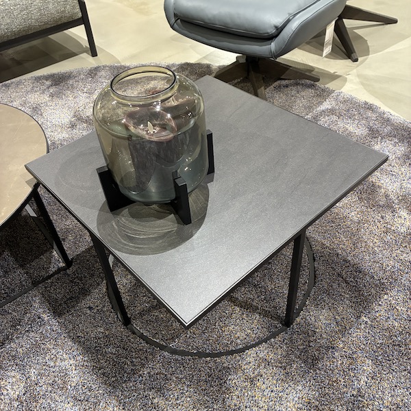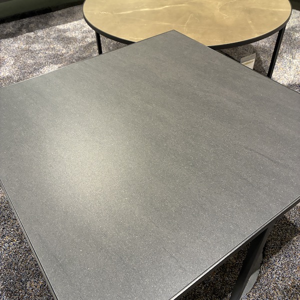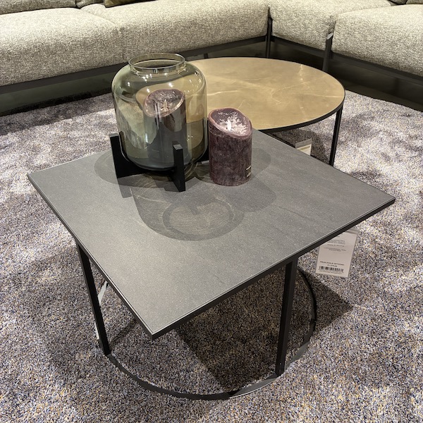De Leolux Prismo salontafel set met keramiek bladen is een speelse combinatie van een ronde en een vierkante tafel die samen een mooi geheel vormen in de zithoek. De set bestaat uit een grotere ronde tafel in warme okerbruine tint (Pulpis) en een vierkante tafel in donker basalt noir. Twee verschillende vormen die elkaar versterken en zorgen voor een levendig, maar rustig middelpunt op het kleed.