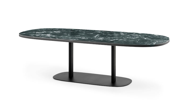 Binnen de vormgeving van de Leolux Toveri tafel-familie, ontwierp Studio Truly Truly ook een luxe design eetkamertafel. Naar analogie van de salontafels, speelt de Toveri eetkamertafel een spel van zachte vormen en harde materialen, van schaduwen en rondingen.