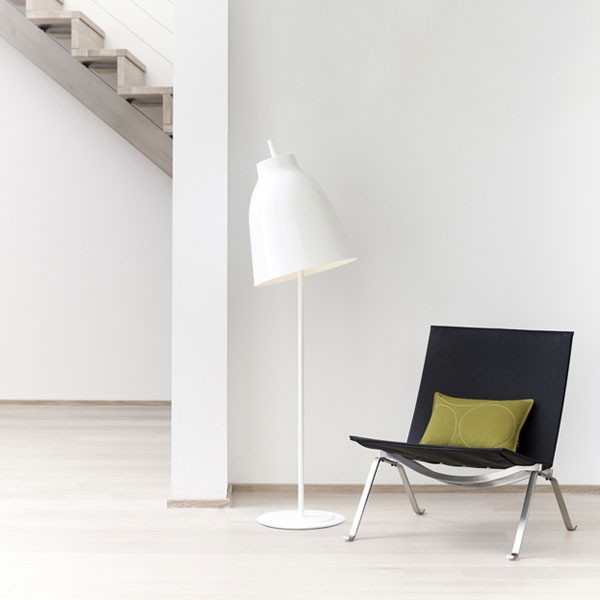 Het karakteristieke Caravaggio ontwerp van Cecilie Manz is nu ook als vloerlamp vekrijgbaar. De kap is hoogglans. De voet en poot hebben een doffe lak. Dat contrast maakt de vloerlamp bijzonder. Bovendien is de kap aan de bovenkant open, waardoor het licht mooi boven de lamp uit schijnt. In de kap zit een flexibele buis verborgen. Die zorgt ervoor dat de kap tot 40 graden gekanteld kan worden. De Caravaggio F vloerlamp is dus functioneel en zorgt voor flexibele verlichting.