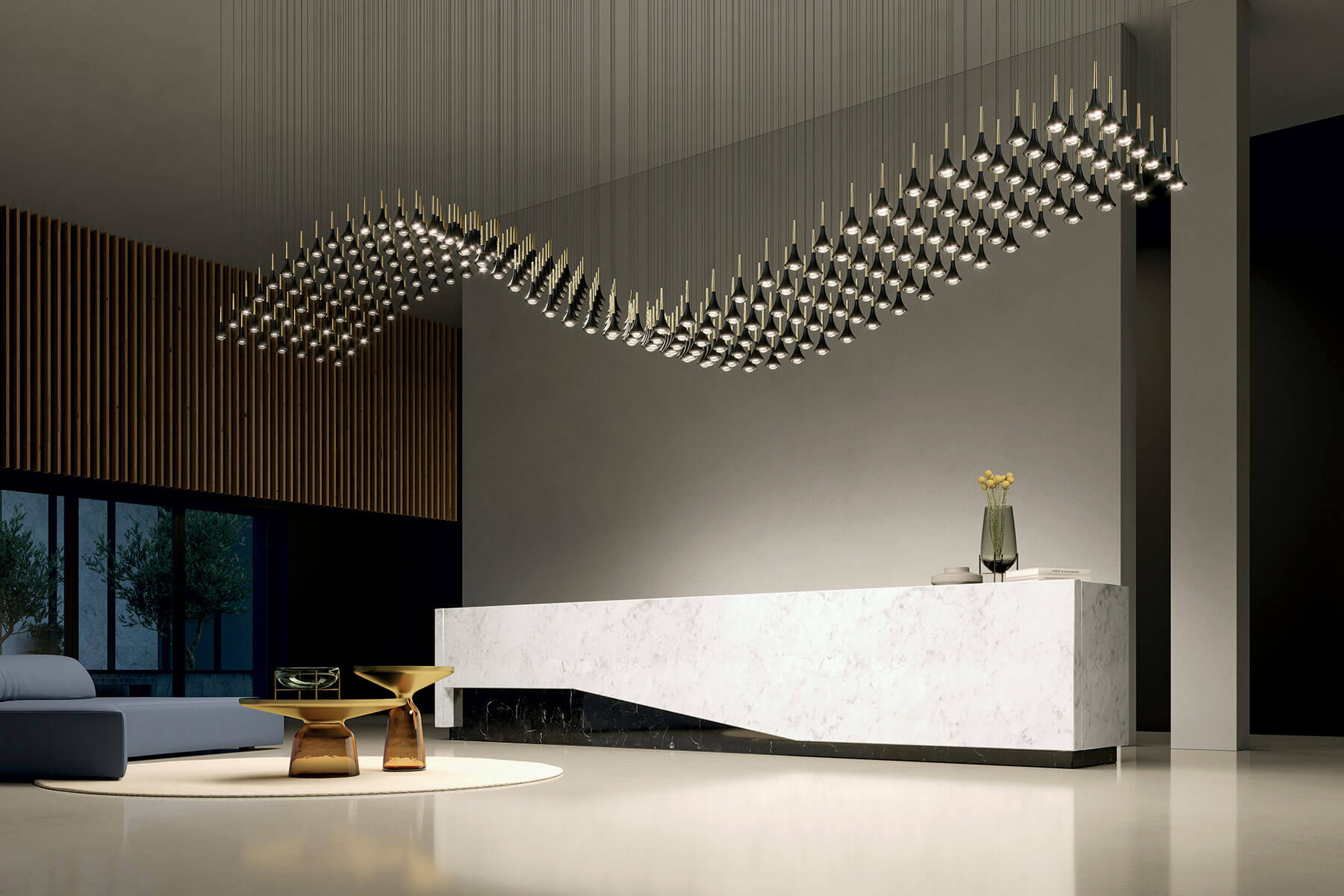 Het moment vastleggen dat een regendruppel uit de lucht valt. De Lodes Rain hanglamp is een uniek vormgegeven lamp met een LED-lichtbron die door een bolle lens wordt geprojecteerd. Zo ontstaat er helder en elegant licht in uw ruimte, zonder u te verblinden.