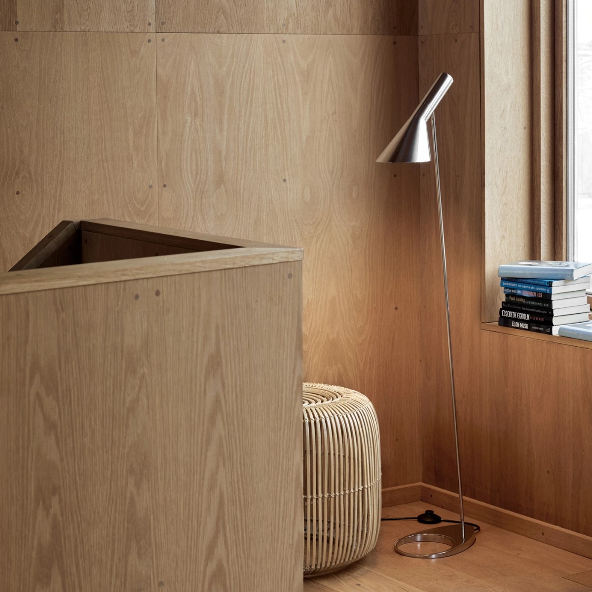 De AJ staande lamp van Louis Poulsen is een iconisch ontwerp van Arne Jacobsen uit 1960, oorspronkelijk gemaakt voor het SAS Royal Hotel in Kopenhagen. Deze designklassieker valt op door strakke lijnen, een minimalistisch profiel en een functionele, verstelbare kap die gericht licht geeft zonder te verblinden. Verkrijgbaar in diverse kleuren en materialen, past de AJ-lamp perfect in zowel moderne als tijdloze interieurs en combineert hij elegantie met hoogwaardige afwerking.