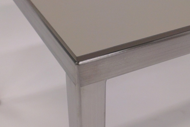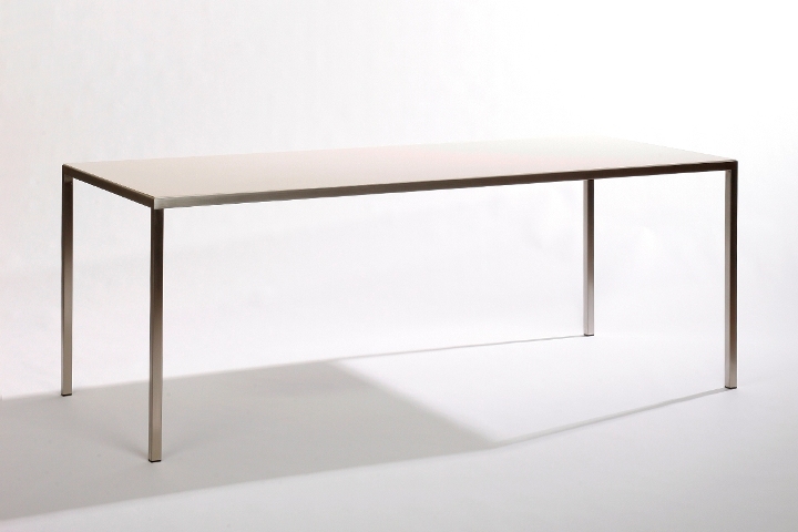 MaterialenFrame 30 x 30 mm, RVS of gelakt (alle ral kleuren)Blad HPL(fenix) rand 5 mm bijpassend gelakt, keramiek 3 mmmassief hout rand 5 mm