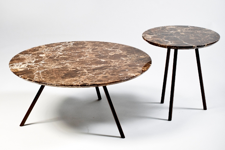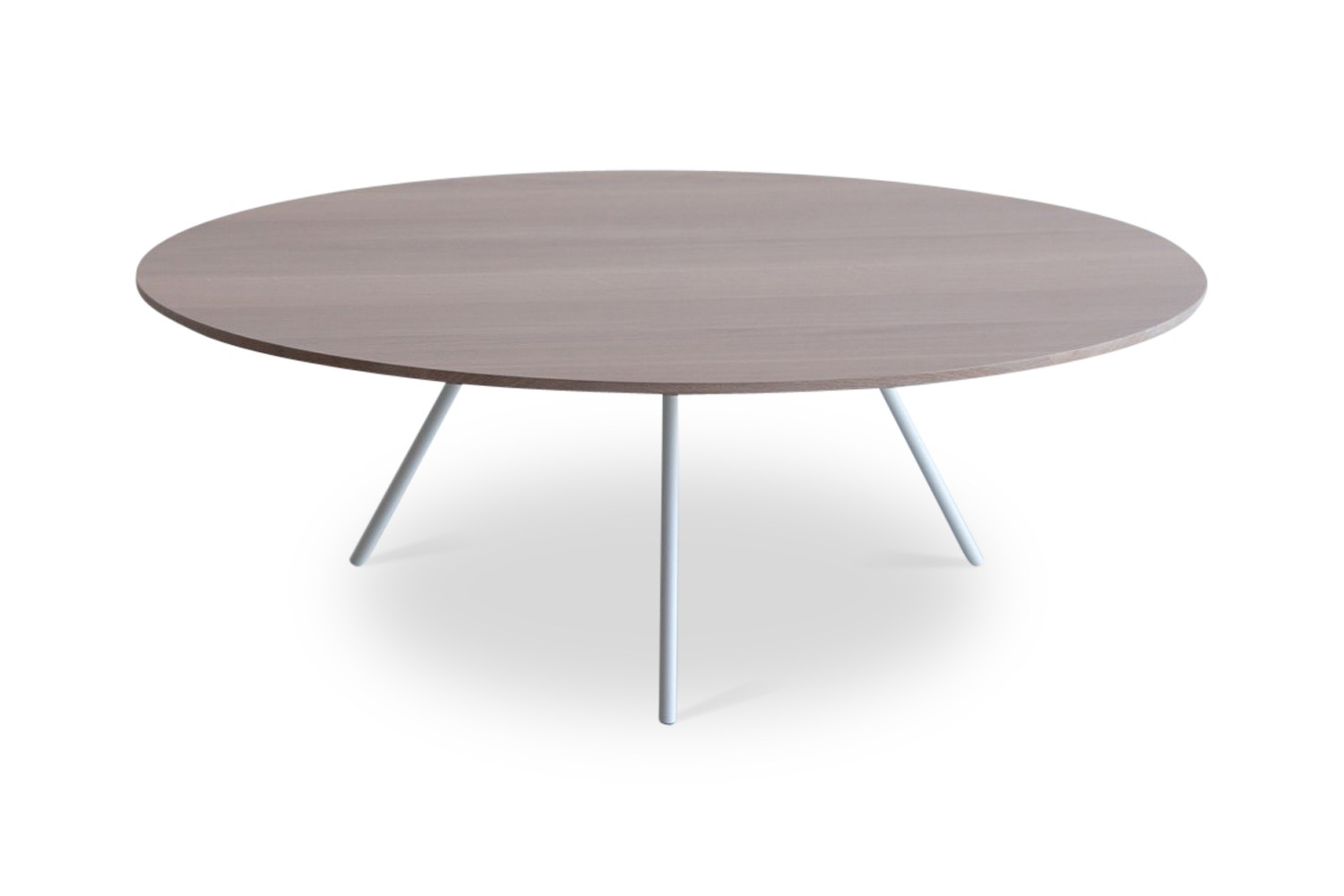Materialen3-poot onderstel metaal (kera)lak of RVS, blad keramiek, HPL of massief hout