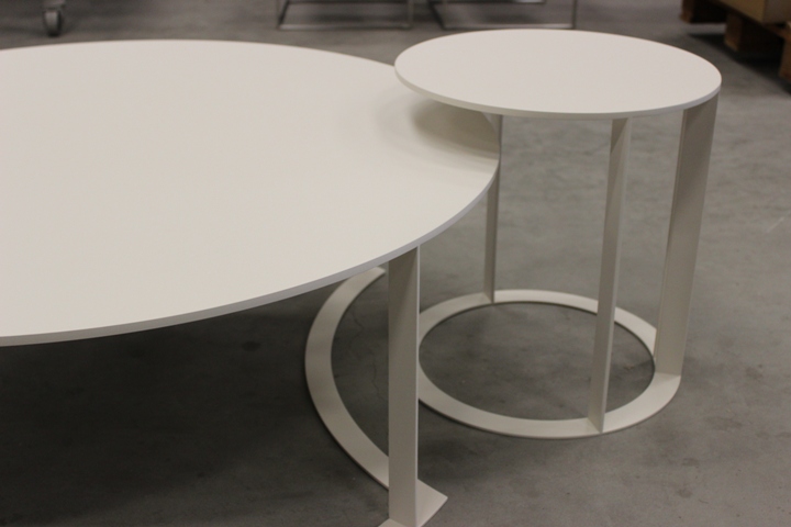 Afmetingenset:Ø 80 x 35 cm hoog + Ø 40 x 42 cm hoogØ100 x 35 cm hoog + Ø 40 x 42 cm hoogbijzettafel (los):Ø 40 x 42 cm hoog of Ø 40 x 50 cm hoog