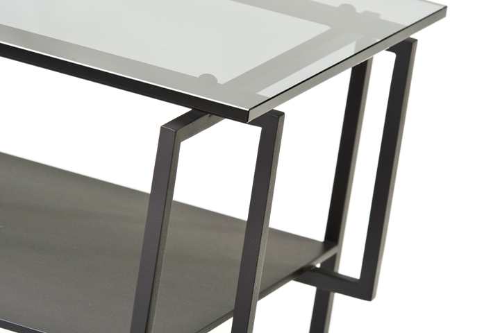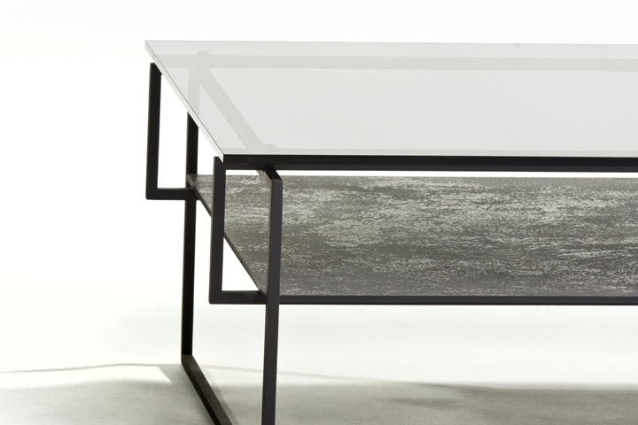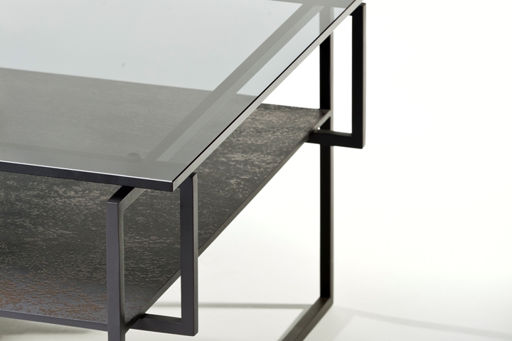 Materialenframe gelakt staal 12 x 12 mmOnderblad keramiek (diverse kleuren leverbaar)Bovenblad glas 10 mm