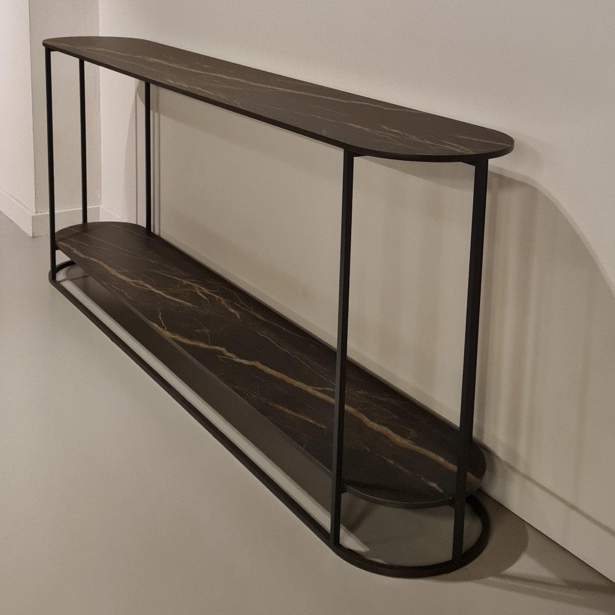 De Curves-D is een elegante open kast zonder hoeken, met ovale planken en uniek afgeronde keramische bladen die luxe uitstralen; verkrijgbaar als sidetable of kast in diverse hoogtes, lengtes en diepte, waarbij het speelse en stijlvolle design functionaliteit moeiteloos combineert en een opvallend statement in elk interieur vormt.