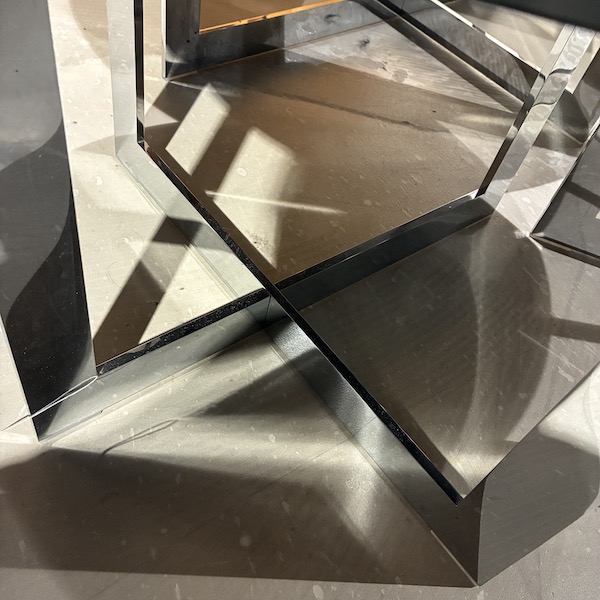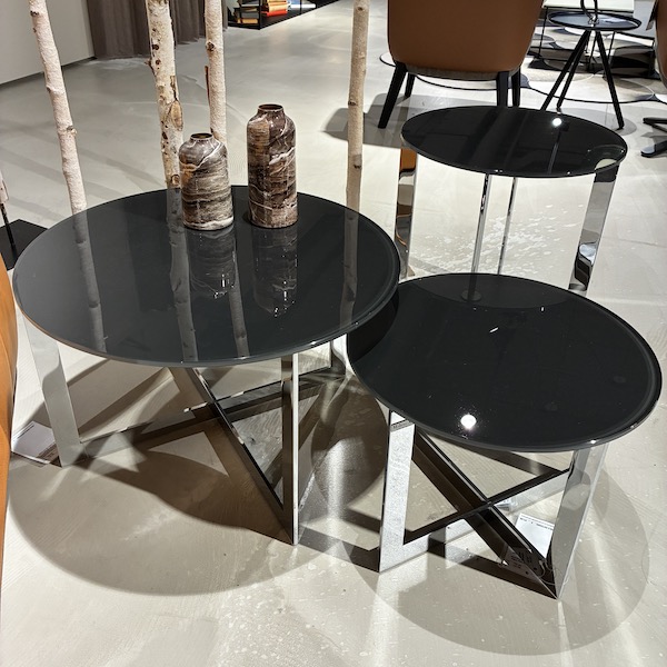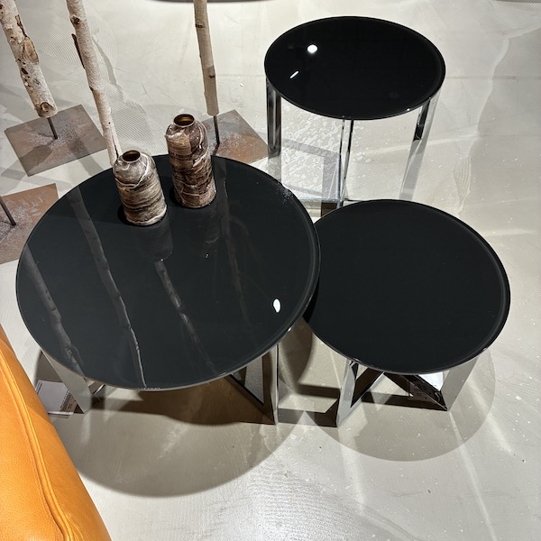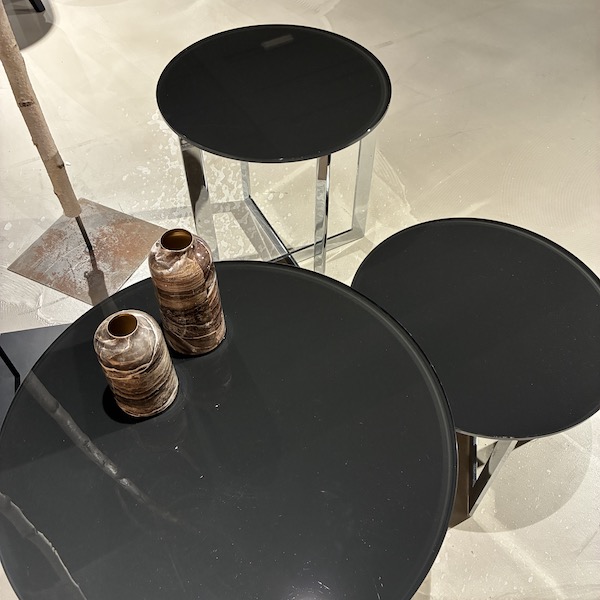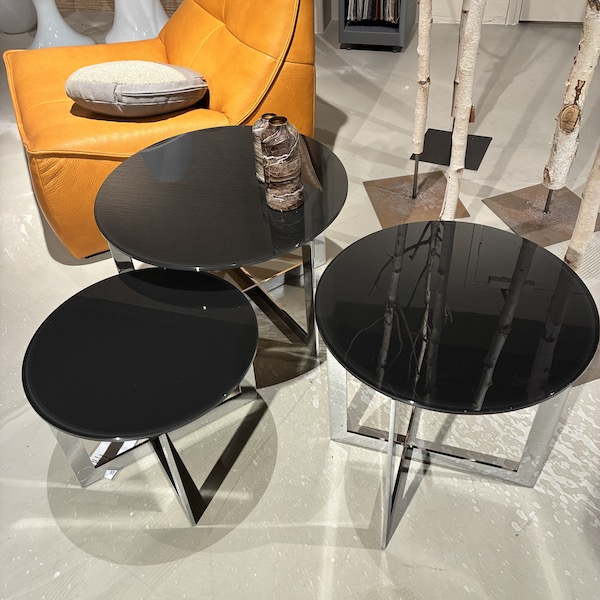 Deze Domino bijzettafelset (3 stuks) is zo’n stoere design must-have. De ronde antraciet glazen bladen combineren mooi met het strakke chromen onderstel. Doordat het frame over de grond doorloopt en nét niet in het midden kruist, ontstaat een interessant optisch effect waar u naar blijft kijken.