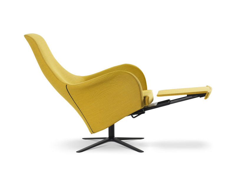 De fauteuil Marvin combineert een elegant design met een ingenieus, bijna onzichtbaar relaxmechanisme. Dankzij een nieuw, gepatenteerd systeem kunnen rugleuning, voetensteun en hoofdsteun eenvoudig worden aangepast aan lichaamslengte of gewenste houding. De fauteuil is luxueus afgewerkt, met afzonderlijk gestoffeerde onderdelen die in verschillende kleuren en materialen leverbaar zijn. Marvin kan optioneel zonder relaxfunctie worden besteld en staat op een draaivoet met vier aluminium tenen, verkrijgbaar in matzwart of acero.