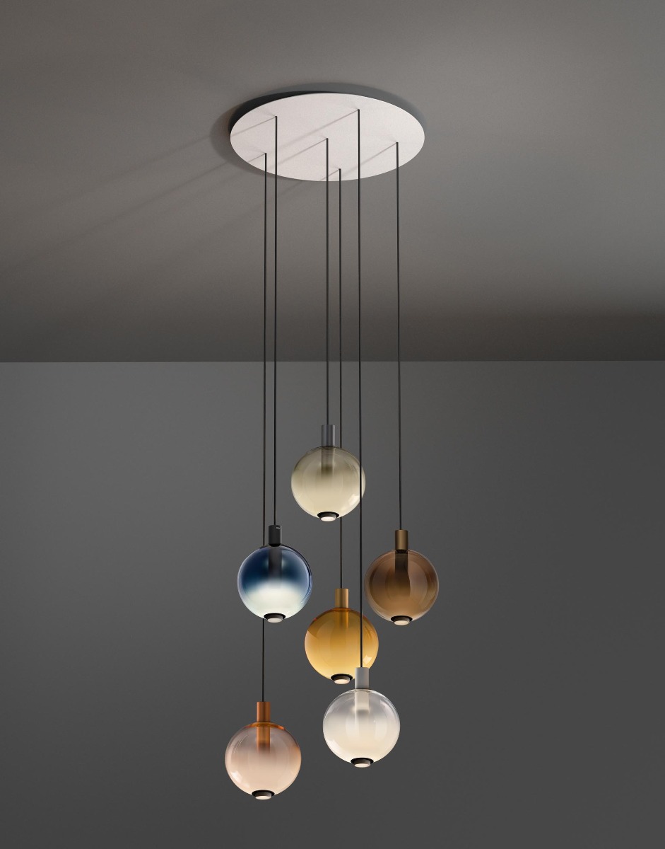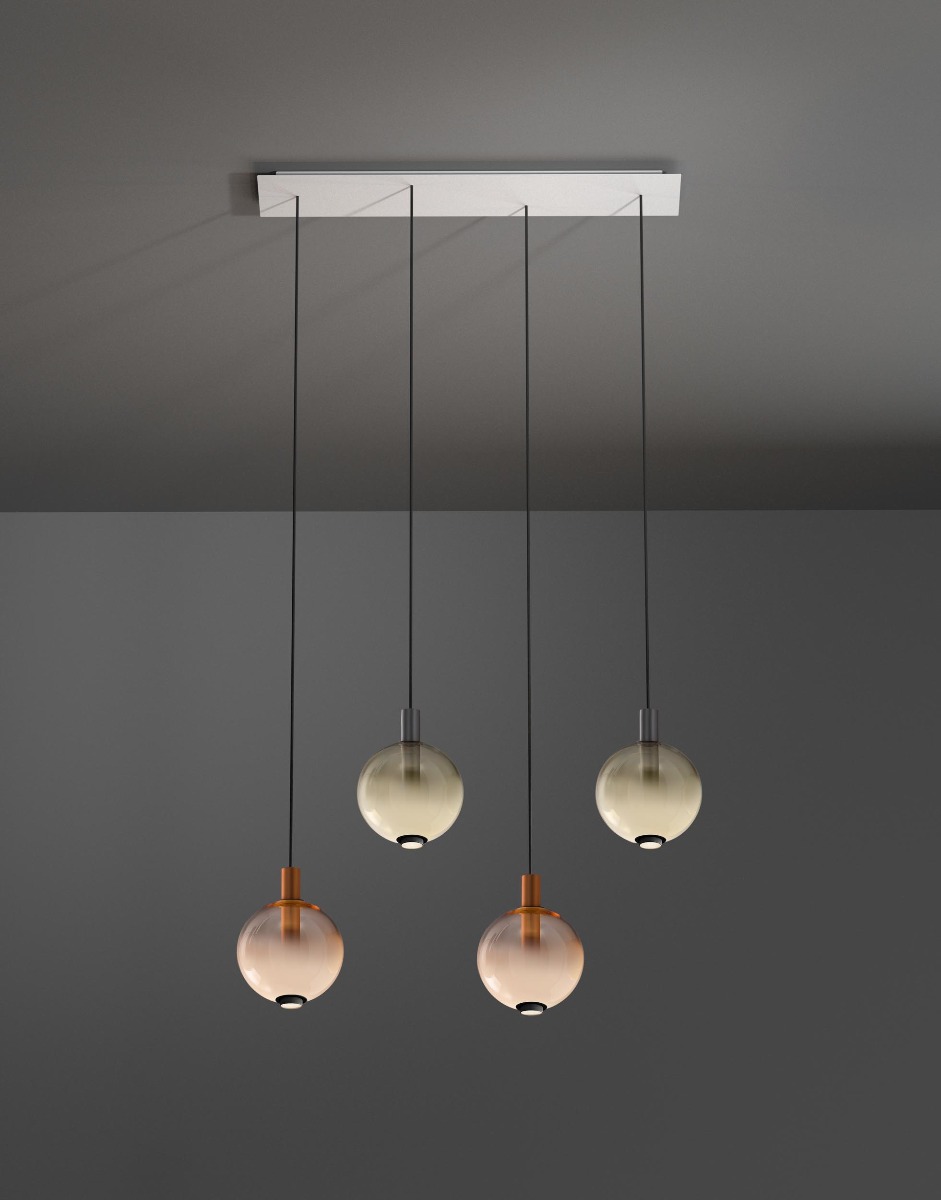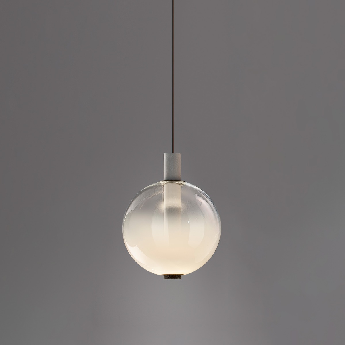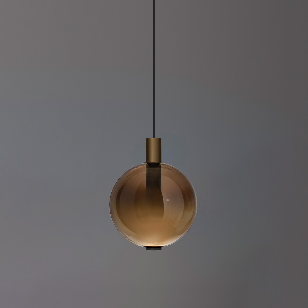 De Olev Beam Stick Nuance is een bolvormige, mondgeblazen hanglamp uit Italië, verkrijgbaar in diverse kleuren met subtiele kleurverlopen dankzij drie glaslagen. De zwarte ring heeft gecanneleerde gravures voor geometrische lichtreflecties. De lamp beschikt over dual LED: één bron voor sfeervol diffuus licht, één voor gerichte verlichting naar beneden.