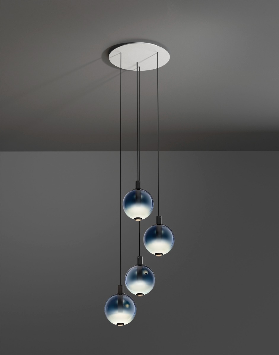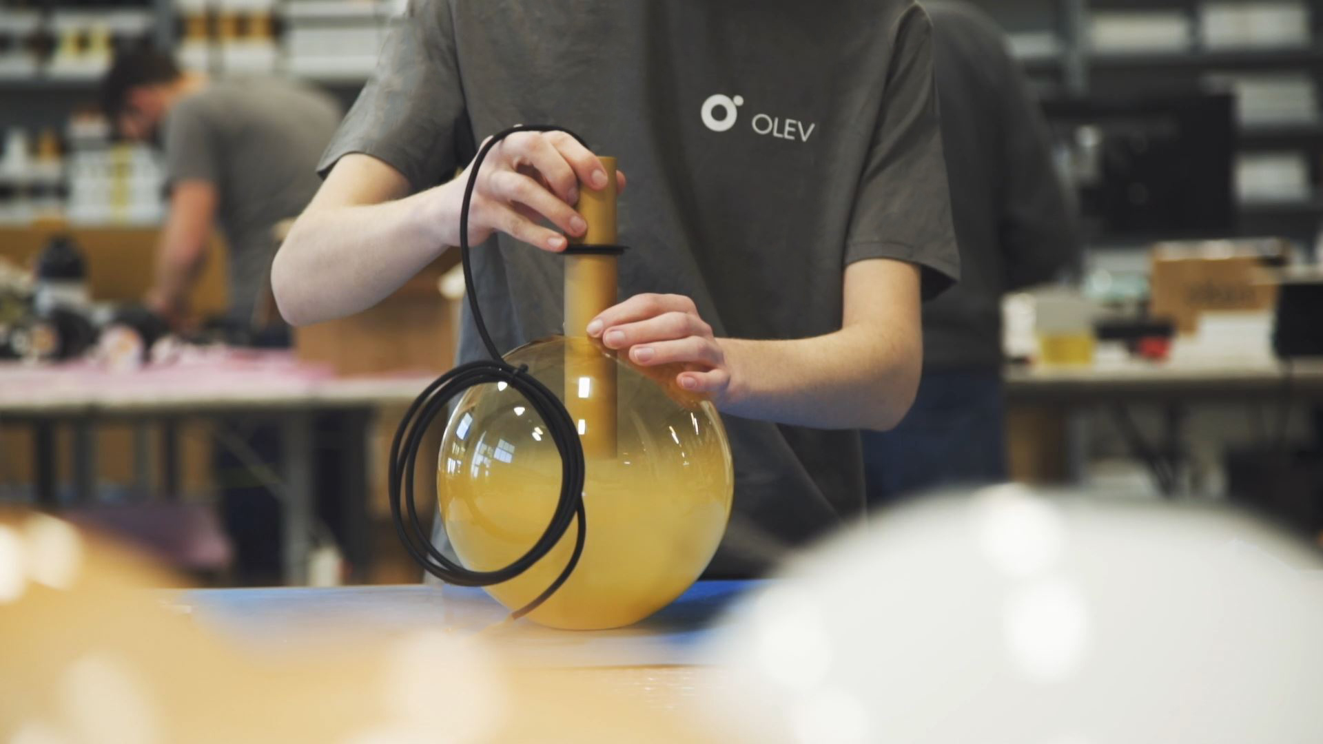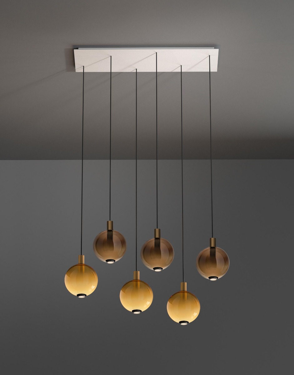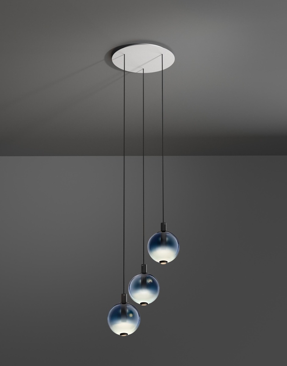 De Olev Beam Stick Nuance is een bolvormige, mondgeblazen hanglamp uit Italië, verkrijgbaar in diverse kleuren met subtiele kleurverlopen dankzij drie glaslagen. De zwarte ring heeft gecanneleerde gravures voor geometrische lichtreflecties. De lamp beschikt over dual LED: één bron voor sfeervol diffuus licht, één voor gerichte verlichting naar beneden.