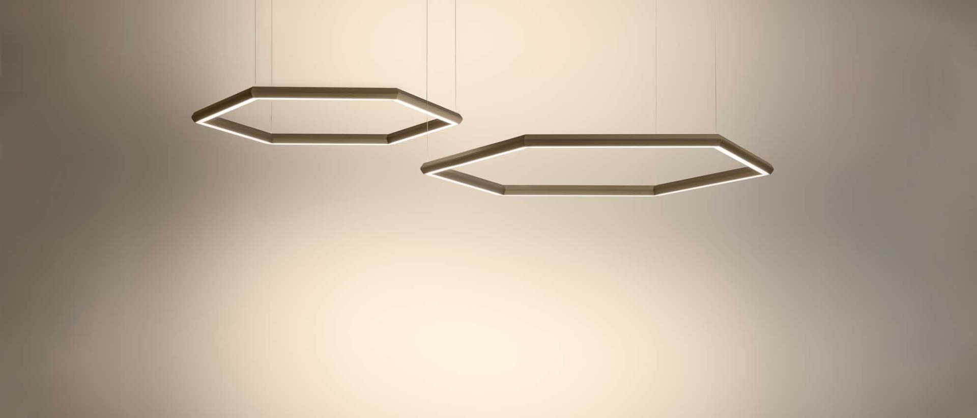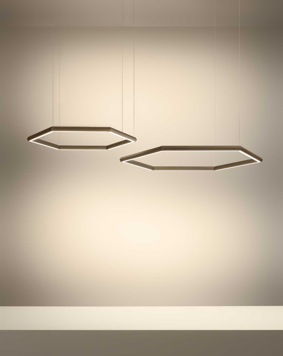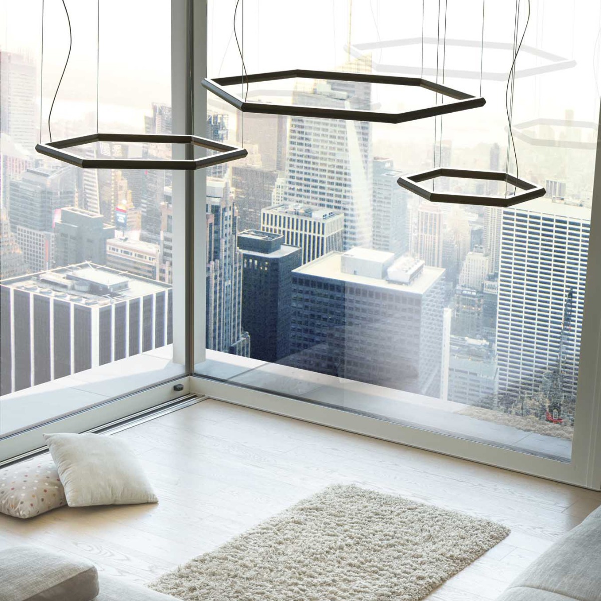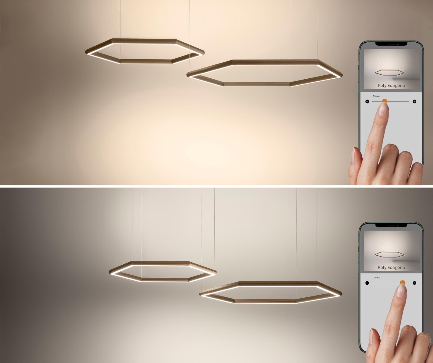 De Poly Esagon lamp van Olev is een opvallende designlamp met een geometrische zeshoekige (hexagonale) vorm, geïnspireerd door moderne architecturale lijnen. Deze lamp wordt vaak gepresenteerd als een hangende verlichtingselement en combineert stijl met functionaliteit. Het ontwerp kan worden gebruikt als een enkel statement-stuk of in clusters voor een opvallend effect. De lampen zijn dimbaar en kunnen met een digitaal worden aangestuurd.