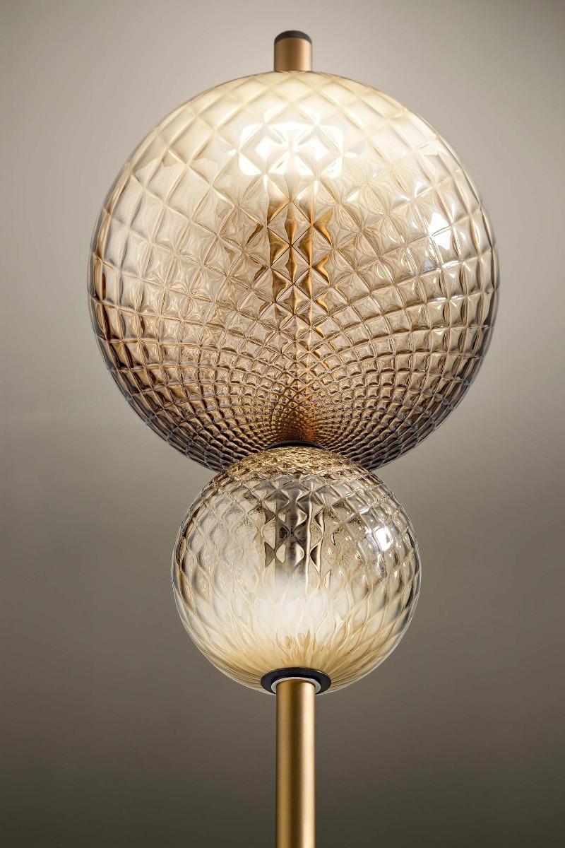 Terra & Luna is een bijzonder sfeervolle LED-vloerlamp gemaakt van aluminium en mondgeblazen glas, van het Italiaanse designlampen merk Olev. De prachtige glazen bollen zijn gerealiseerd met behulp van de speciale “balloton”-techniek. De lamp heeft een slank silhouette met twee glazen lichtbollen die een zacht, diffuus licht verspreiden. De Olev Terra&Luna is een zeer decoratieve, functionele lamp met zowel een opwaartse als neerwaartse lichtbundel.