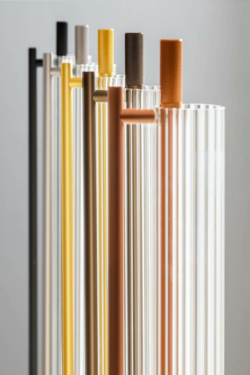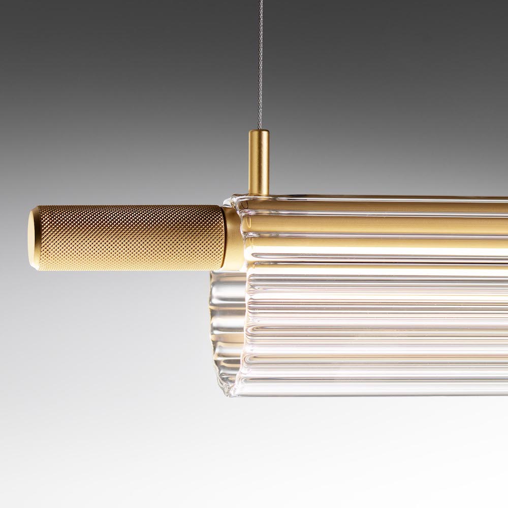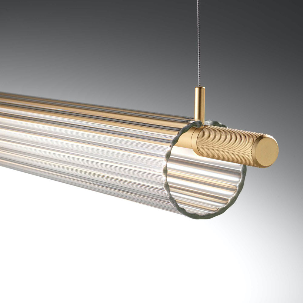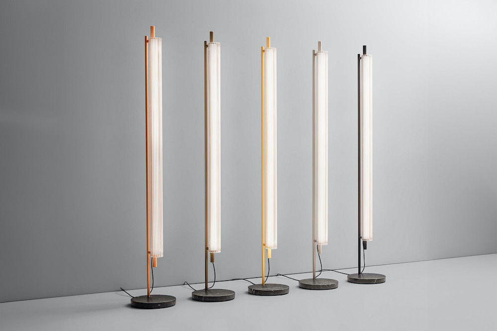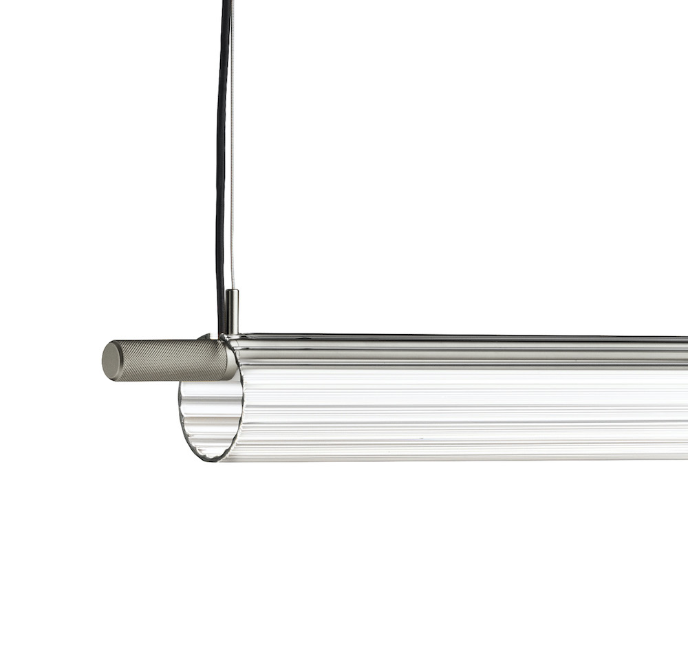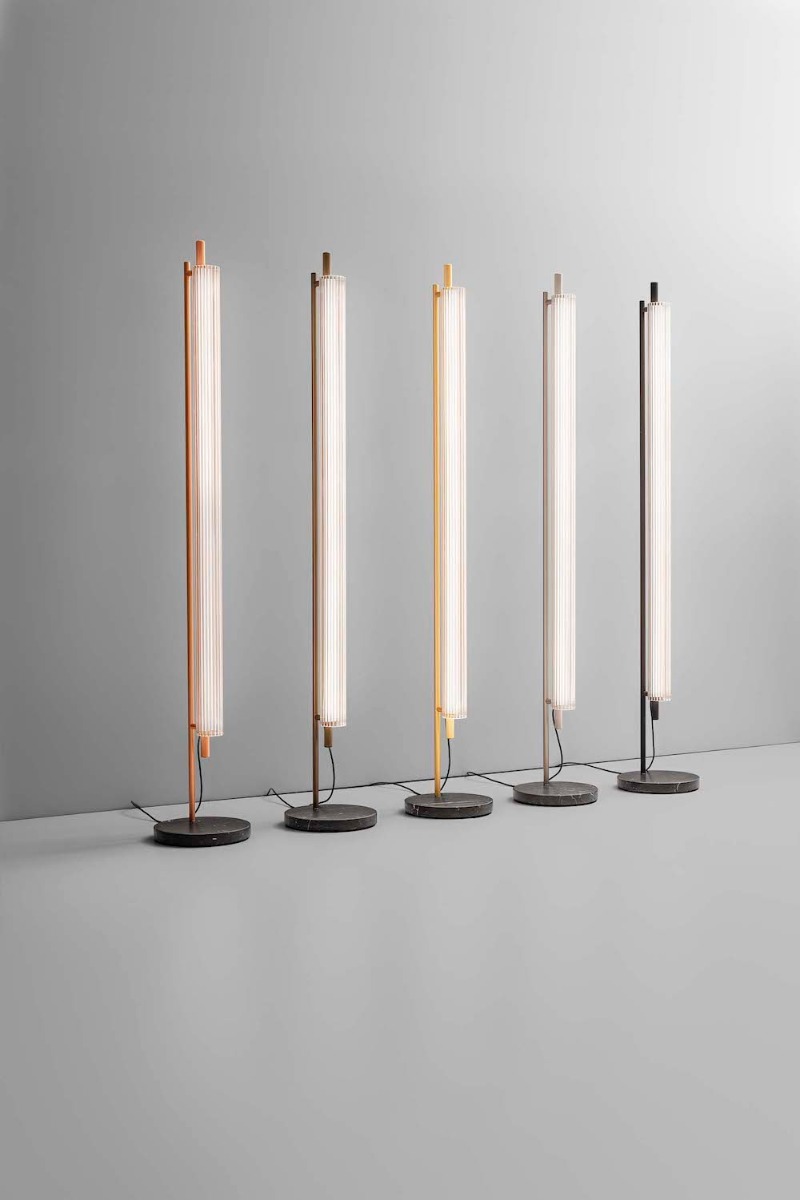 Deze Italiaanse Olev lamp is een combinatie van lichtgewicht en slanke onderdelen van glas en een marmer voet. Het glas is vakkundig met de hand gemaakt en wordt verzacht door dunne gegroefde strepen. De basis voet, in geaderd zwart marmer, is elegant en verfijnd. Het delicate patroon van de gekartelde gravures laten een voortreffelijke aandacht voor detail zien. Alle beschikbare kleuren voor de Olev Trisel lamp zijn gemaakt met vloeibare verf die volledig met de hand wordt aangebracht. De lamp kan zowel hangend als in een model op staande voet worden uitgevoerd.