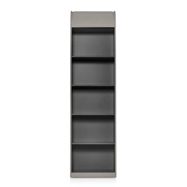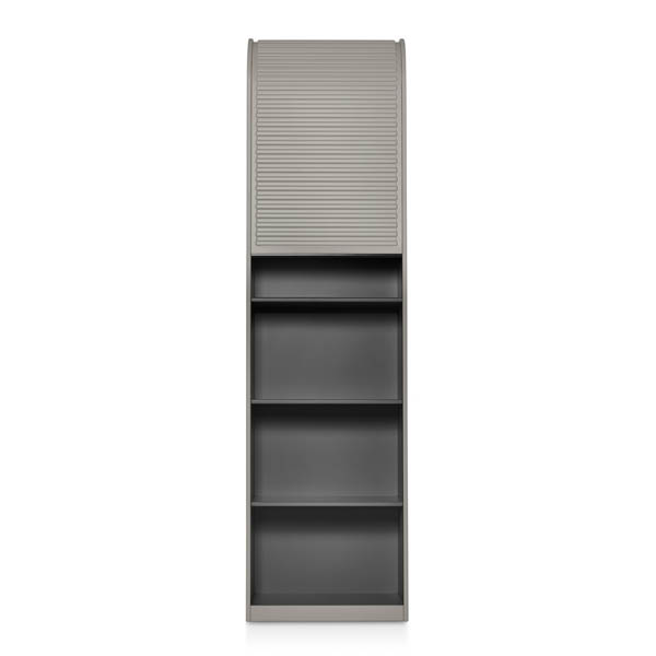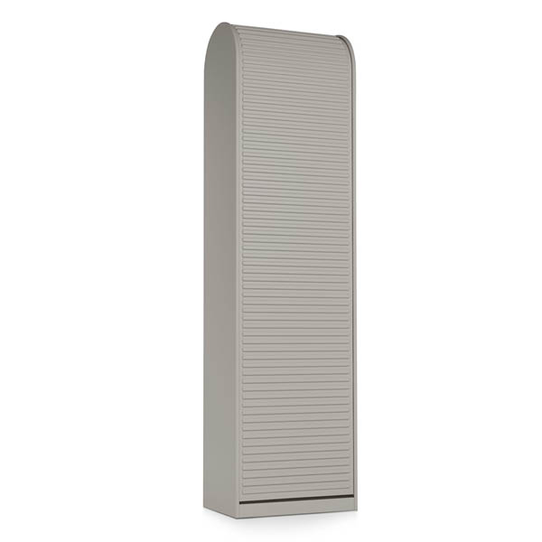 Met zijn strakke lijnen en slimme rolluikmechanisme doet deze A’dammer kast van Pastoe denken aan een klassieke archiefkast – maar dan in een stoer en stijlvol jasje. De lichtgrijze buitenzijde oogt modern en verfijnd, terwijl de donkergrijze binnenkant voor een krachtig contrast zorgt.