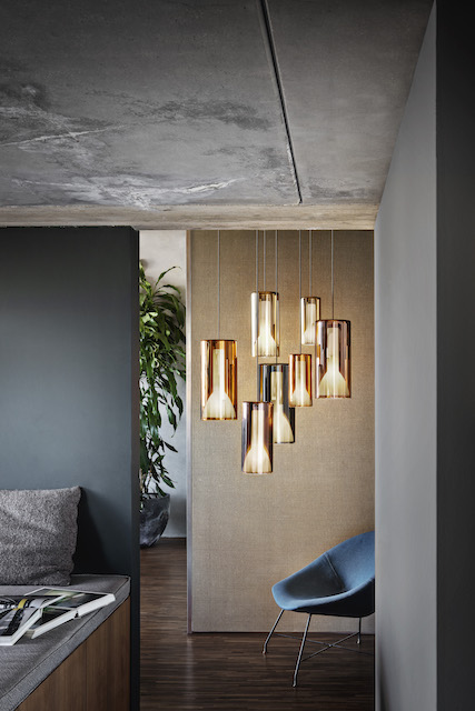 De metamorphose door licht: de Lit hanglamp van Penta. Staat de lamp uit, wordt Lit een hangende sculptuur. Staat de lamp aan, dan wordt de lichtgevende ziel van de lamp onthuld.