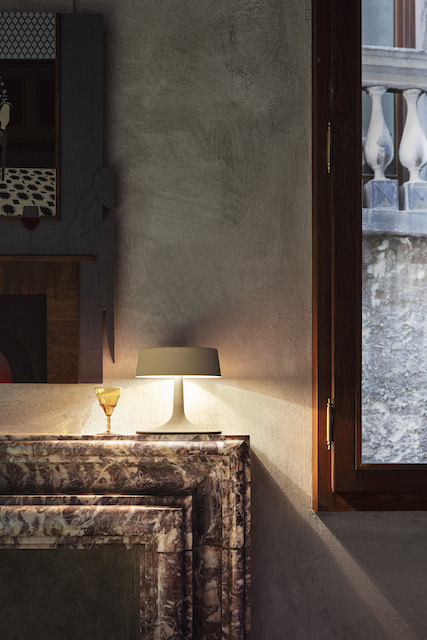 Een elegante leeslamp die het zachte licht verspreidt en weerkaatst door zijn reflecterende voet. De verschillende afwerkingen, van wit tot goud, maken de China vloerlamp van Penta passend om te stralen in elk interieur.