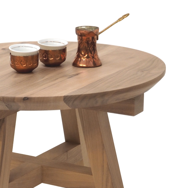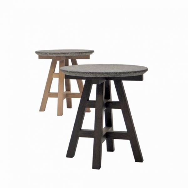 Leverbaar in 2 hoogtes, verschillende kleuren voor het onderstel en het blad kan behalve van massief hout ook van natuursteen Travnik gemaakt.