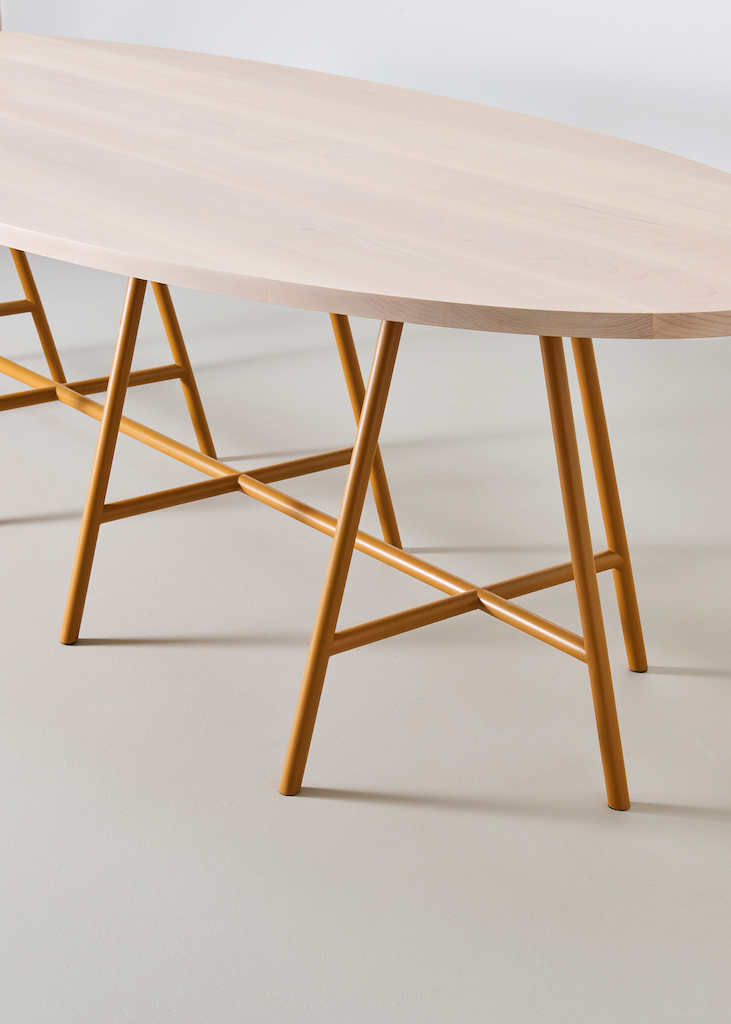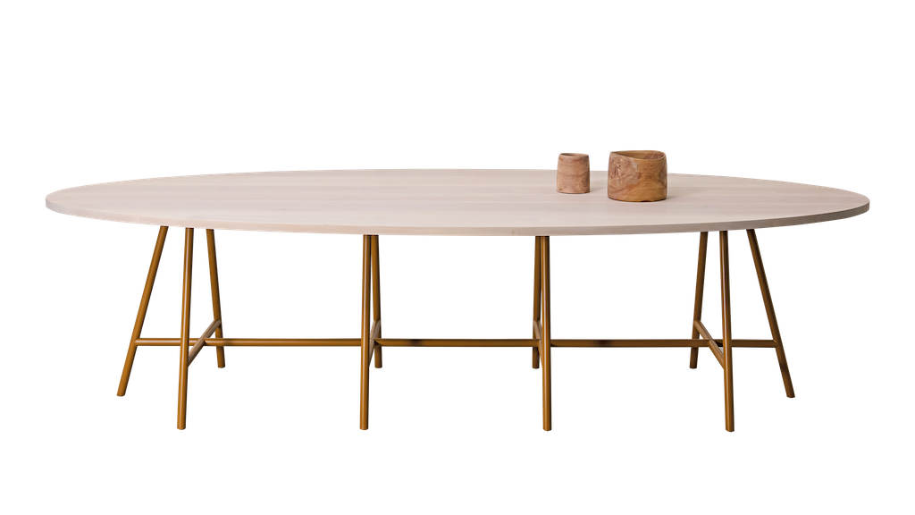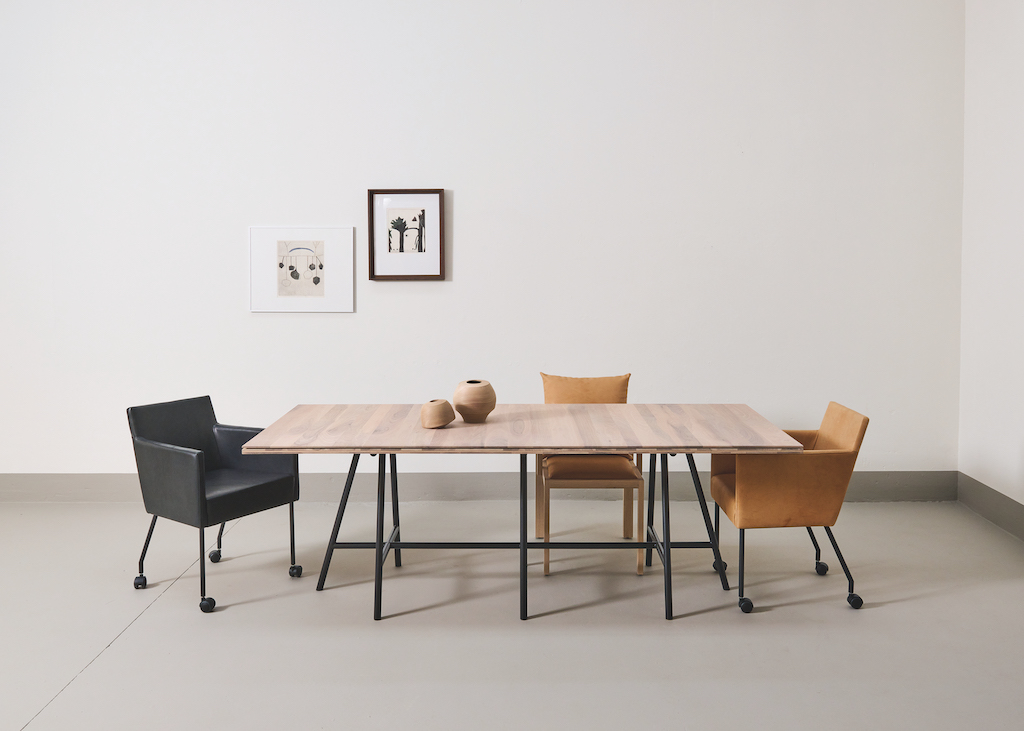 De Pilat & Pilat Djurre tafel biedt iedereen een eigen plek. Met zijn slanke voorkomen is Djurre binnen de collectie een charmante verschijning. Op het ranke frame zijn drie bladvormen mogelijk: de rechthoek, het ovaal of de recht-ovaal, die het midden houdt tussen rechthoek en ovaal. De keuze voor tafelblad-vorm, houtsoort en kleur van het frame geeft elke Djurre zijn eigen karakter.