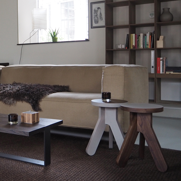 Een elegante kruk van massief hout, ontworpen met een oersterke constructie van de poten om mee te kunnen gaan van generatie op generatie.
