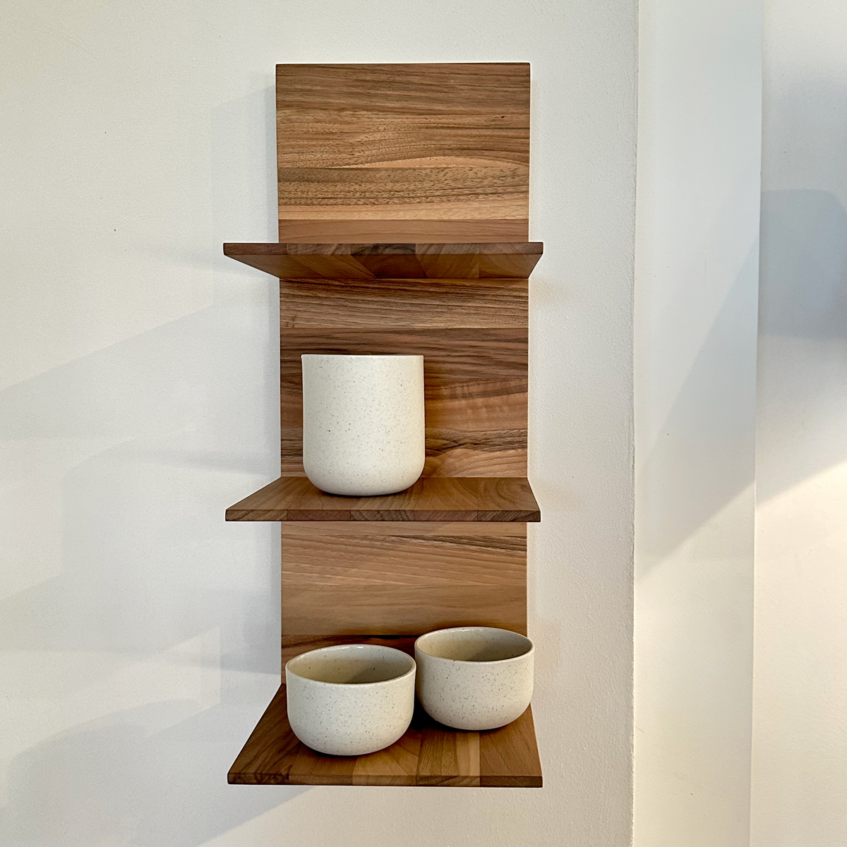Terug van weggeweest: Merle opberger. Waarom is ze eigenlijk ooit weggeweest? Merle is een fraaie organiser voor uw espresso kopjes naast het espresso-apparaat of hangend aan de muur in de badkamer voor cosmetica artikelen. Luchtig met drie etages maar solide door de gewichtige ‘achterwand’. Merle is 50cm hoog, 20cm breed en diep en heeft twee ophang-ogen aan de achterkant. Open en luchtig en toch solide door de gewichtige achterwand.