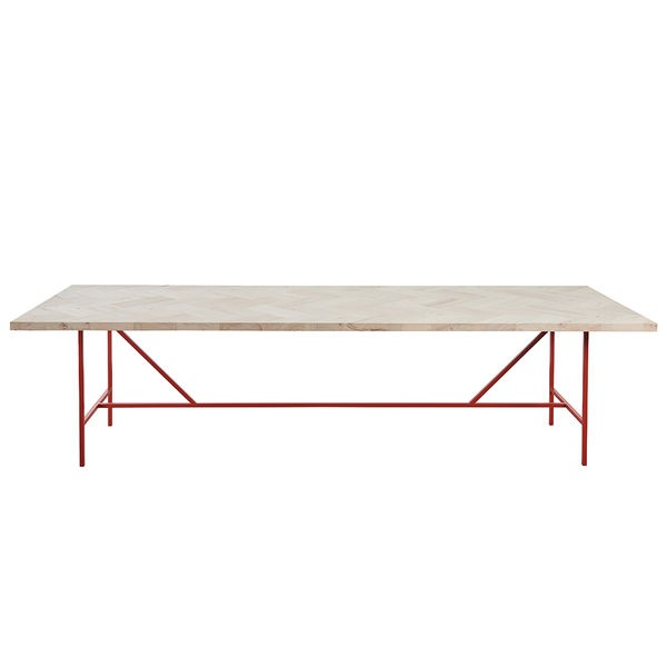 Brugt is een van de nieuwste tafels van Pilat&Pilat, en onderscheidt zich door het stijlvolle vissengraatblad. Het is een ranke verschijning met een massief stalen frame