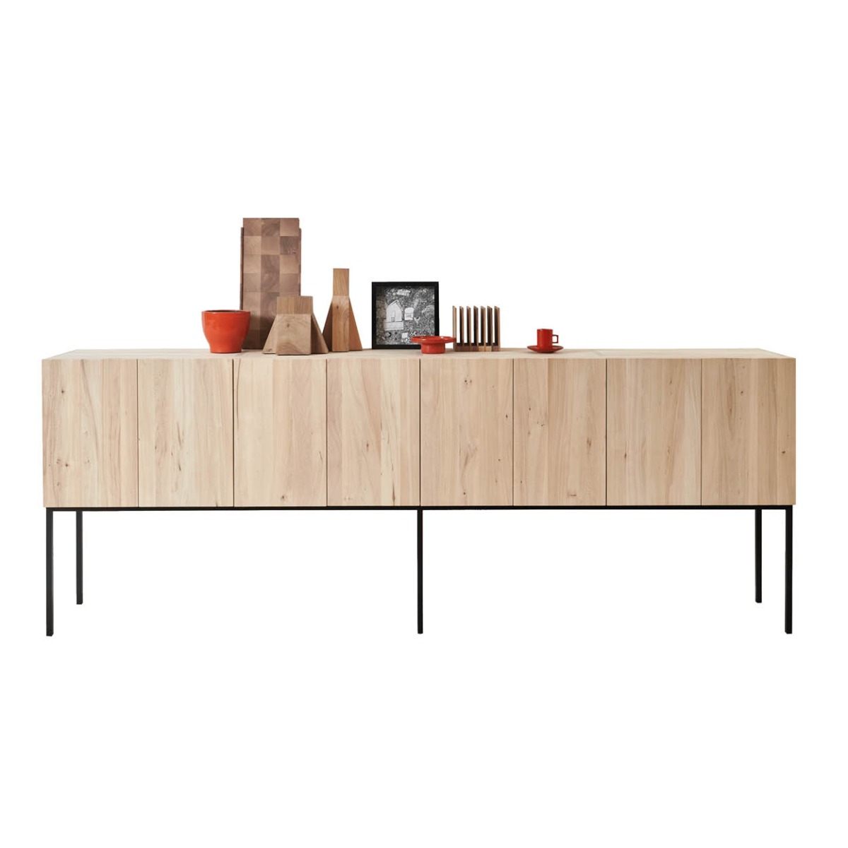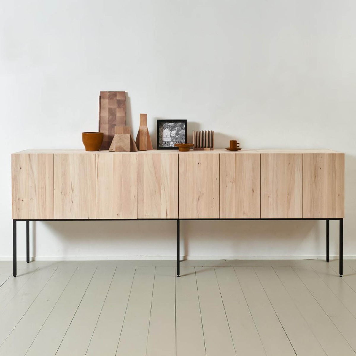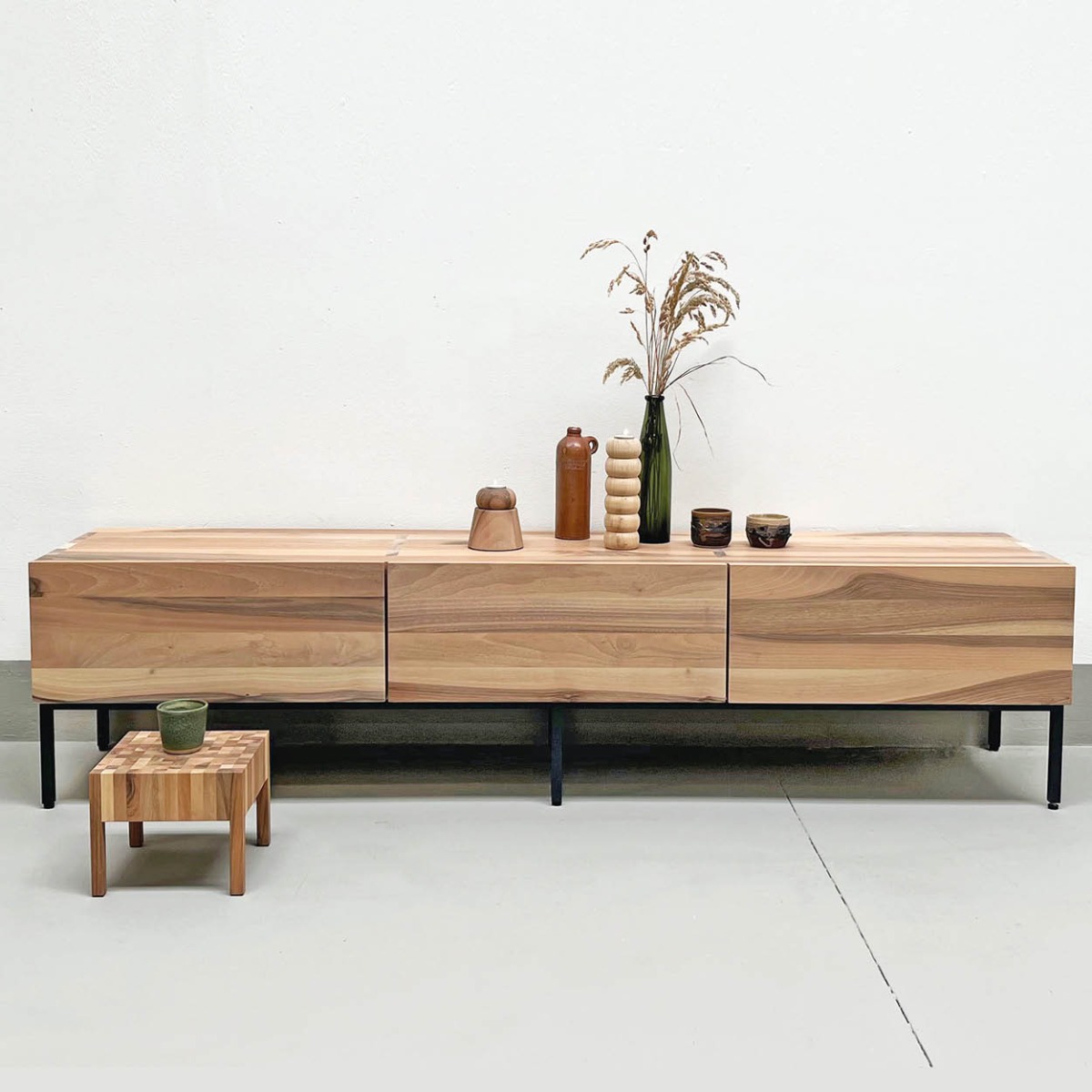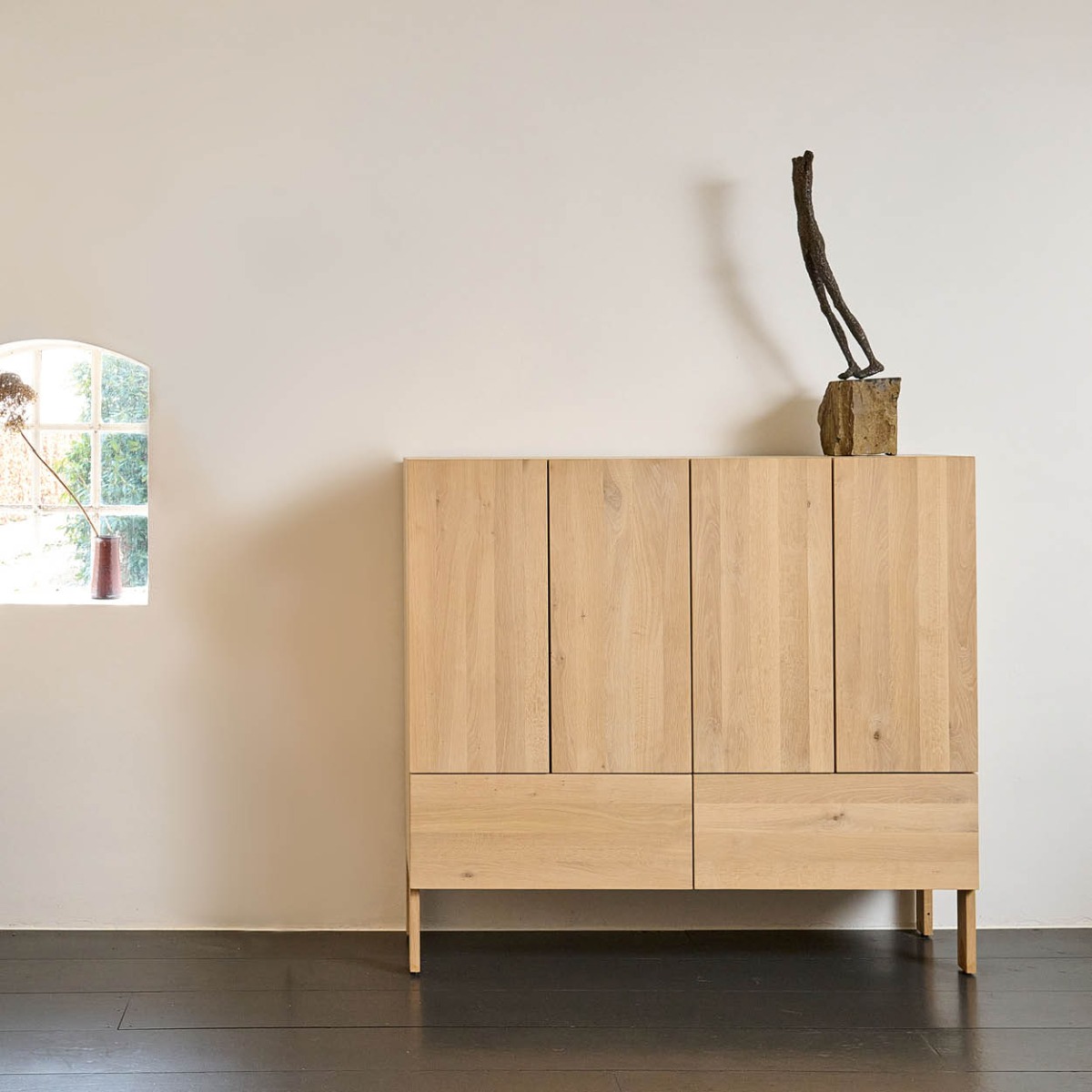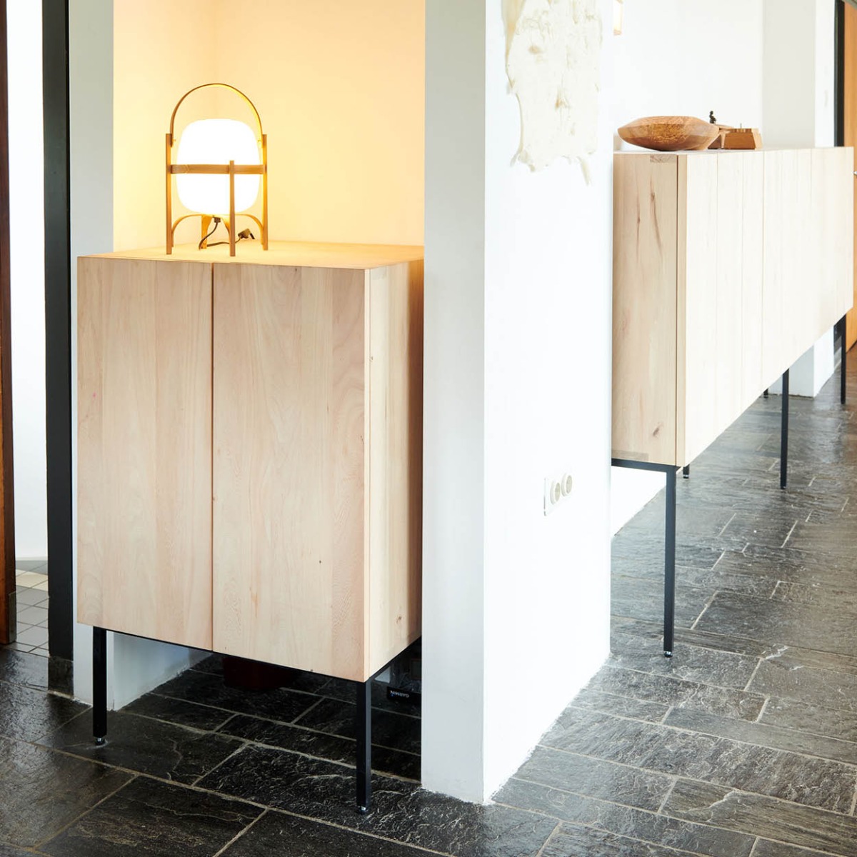 De Elfriede kast van Pilat & Pilat, ontworpen door Gjalt Pilat en Peter Tromop, combineert strak design met warme uitstraling en functionele elegantie. Verkrijgbaar in eiken, licht iepen of walnoot, in 1–4 vakken breed en 2–4 vakken hoog, met optioneel ladevak onderaan. Standaard op houten pootjes van 20 cm of slank stalen frame van 45 cm. Een tijdloos meubelstuk dat karakter en vakmanschap in uw interieur brengt.