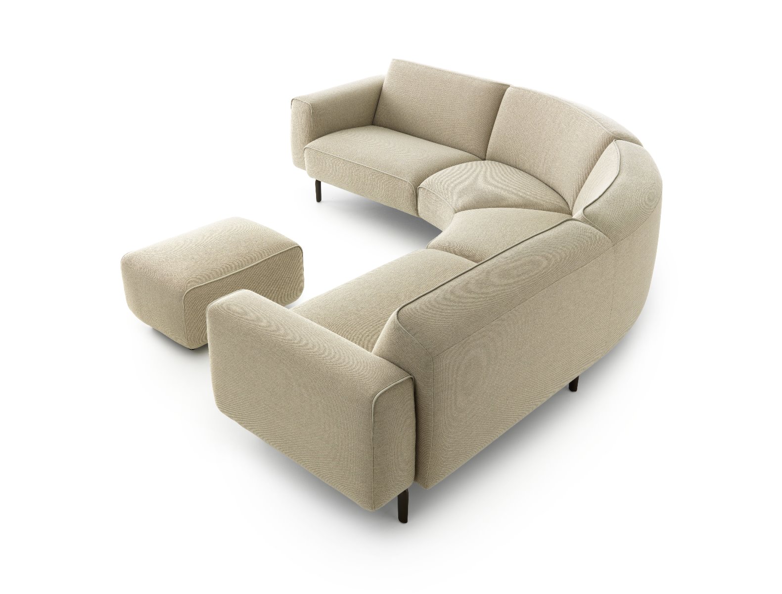 Het meest complete programma in de collectie van Pode is de Melloo. Deze uitgebreide serie bevat drie banken, veertien elementen en een bijpassende poef. De Melloo kunt u geheel naar wens samenstellen met alle toepassingsmogelijkheden die Melloo te bieden heeft. De elementen worden met één poot aan elkaar vast gekoppeld, wat zorgt voor een rustig beeld. Geef de Melloo een persoonlijk detail door een platte bies langs de randen in een ander materiaal uit te voeren: stof, leer, fel of subtiel.