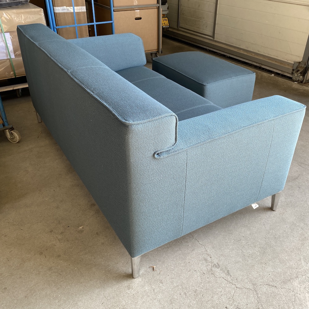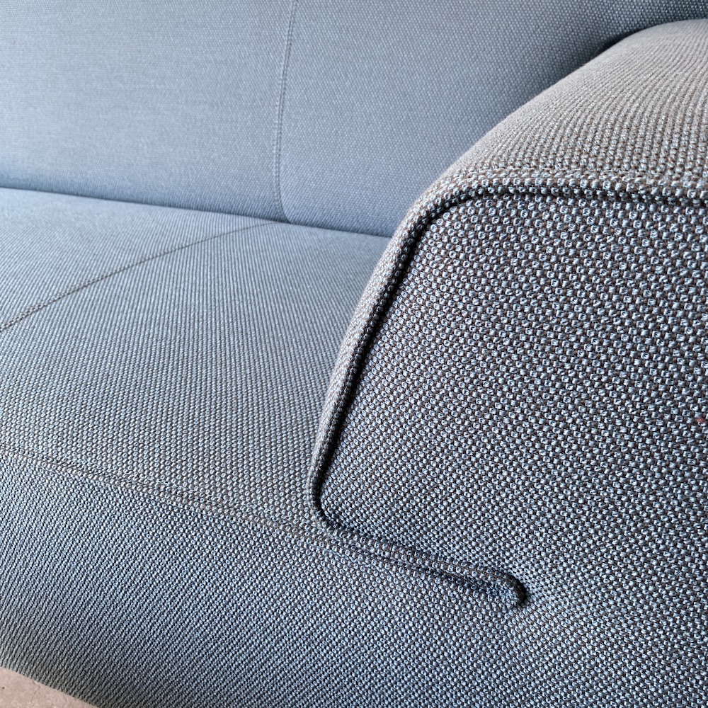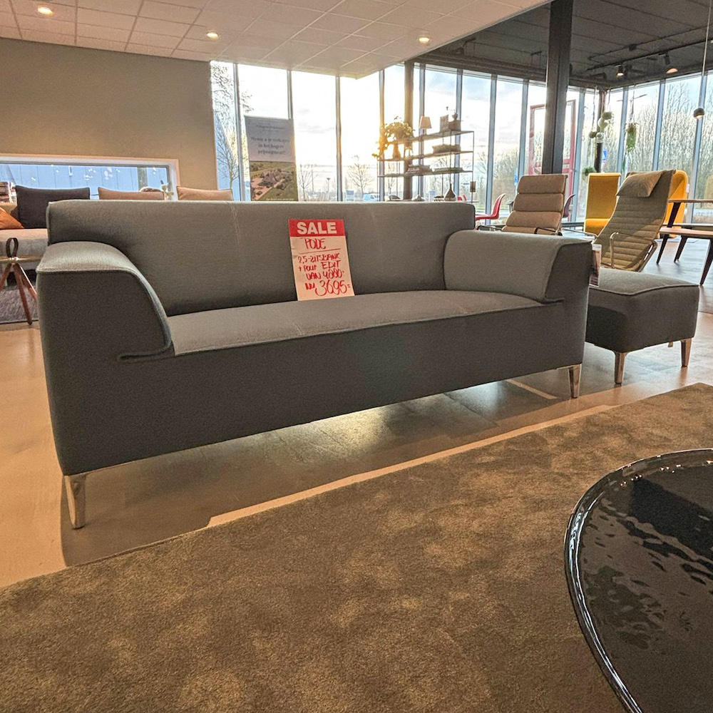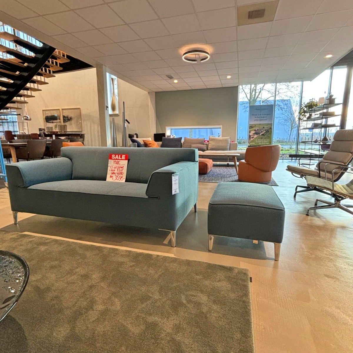 De Pode Edit bank is een moderne, strakke bank die moeiteloos in elk interieur past. Deze lichtblauwe 2,5-zits heeft een bijzondere stof waarin blauw en bruin zijn verweven. De bank is stijlvol afgewerkt met de kenmerkende bies langs de rand. Het showroommodel is nu beschikbaar voor een aantrekkelijke outletprijs en komt met een bijpassende hocker!