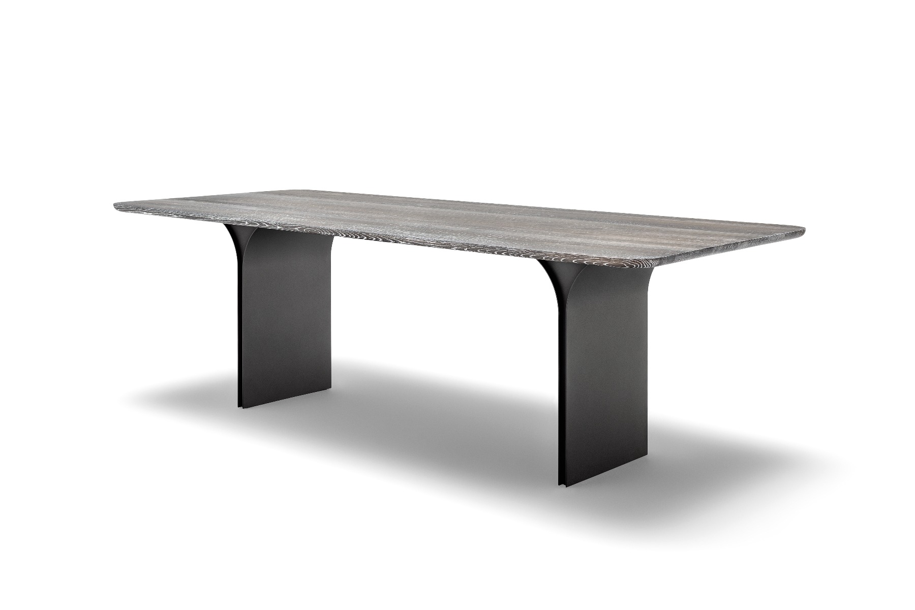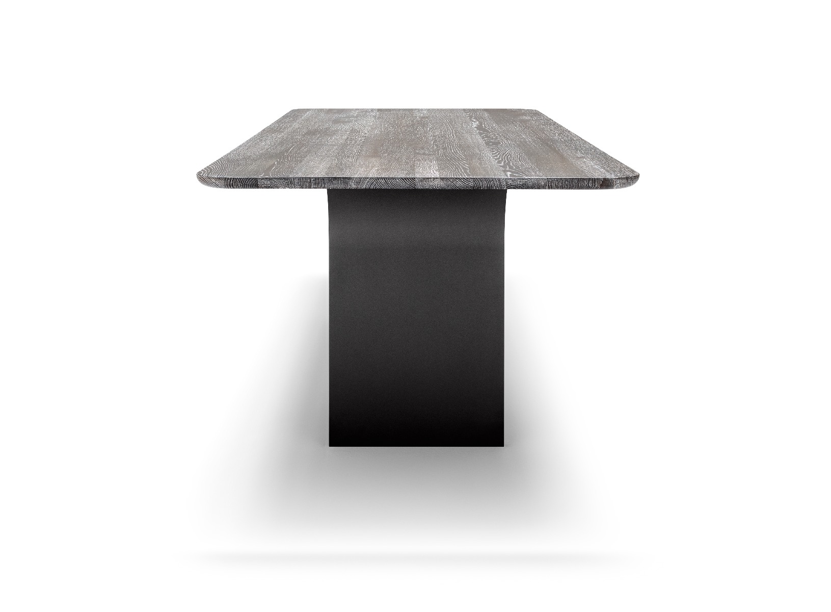 De Rolf Benz 990 eettafel combineert heldere, verfijnde lijnen met een handgeborsteld eiken blad dat licht lijkt te zweven boven smalle zijwangen; de subtiel afgeronde randen contrasteren elegant met het robuuste eiken, terwijl de naar binnenlopende zijwangen voldoende beenruimte bieden voor optimaal zitcomfort, waardoor de tafel perfect te combineren is met zowel Rolf Benz eetbanken als andere eetstoelen uit de collectie.
