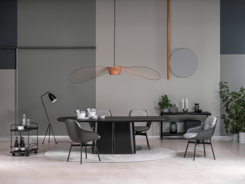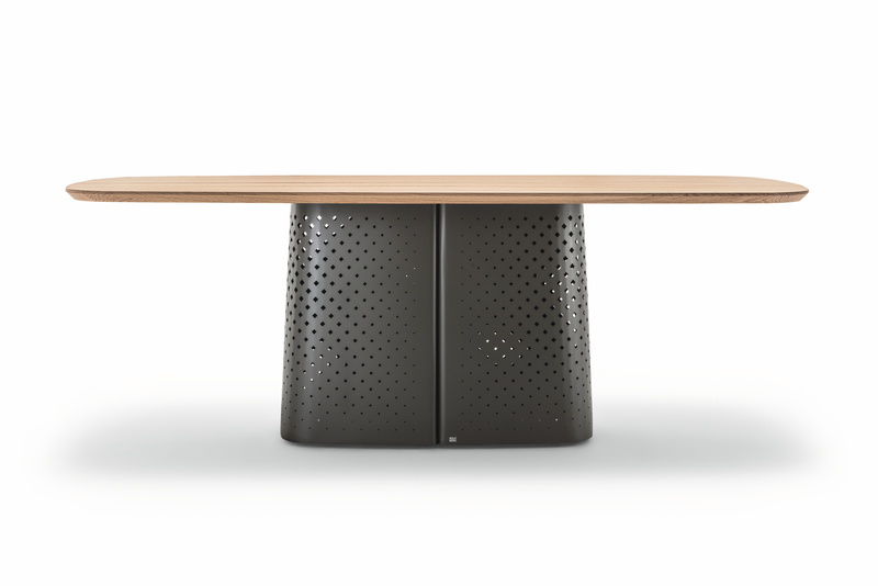 Een echt statement in de ruimte: de Rolf benz 929 design tafel. De stalen middenzuil creƫert door het grafische, patroon een indrukwekkende combinatie van krachtige driedimensionaliteit en transparantie. Bovenop rust het bootvormige tafelblad met fijn afgeronde randen naar de onderzijde toe. Dankzij de organische vorm van het ontwerp komt de design tafel in elk interieur tot zijn recht.