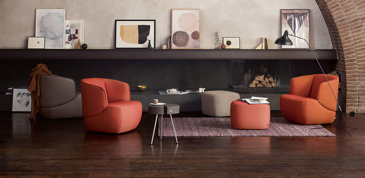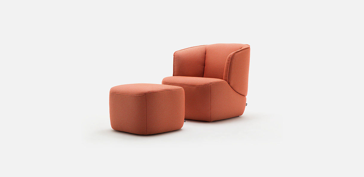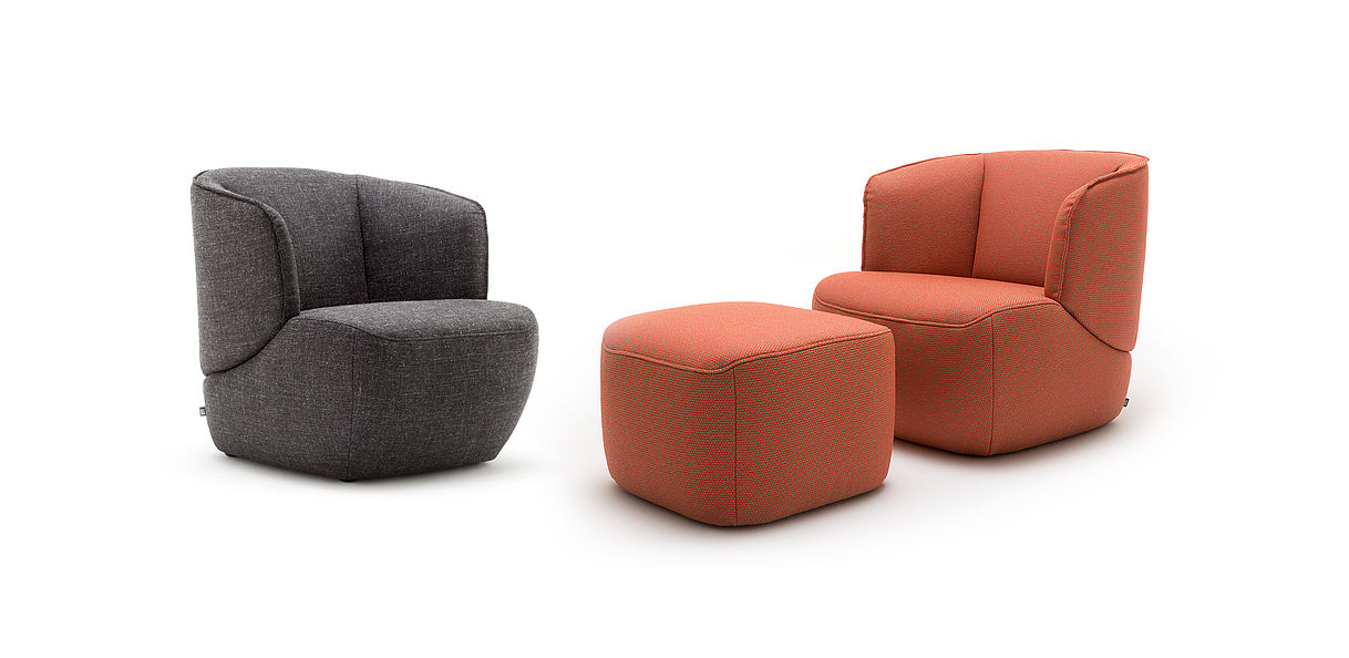 De sierlijke fauteuil Rolf Benz 384 met zijn markante biesnaad en buikachtige vorm is een kenmerkend rustpunt, dat tot lezen en ontspannen uitnodigt. Hij past in kleine tussenruimtes maar ook in royale woonomgevingen en harmonieert met vrijwel alle inrichtingsstijlen en materialen. Helemaal bekleed, zonder zichtbare constructie, kan hij door de keuze van de overtrek heel persoonlijk worden geïnterpreteerd. Voorzien van een dienblad wordt de bijpassende voetenbank een praktische bijzettafel.