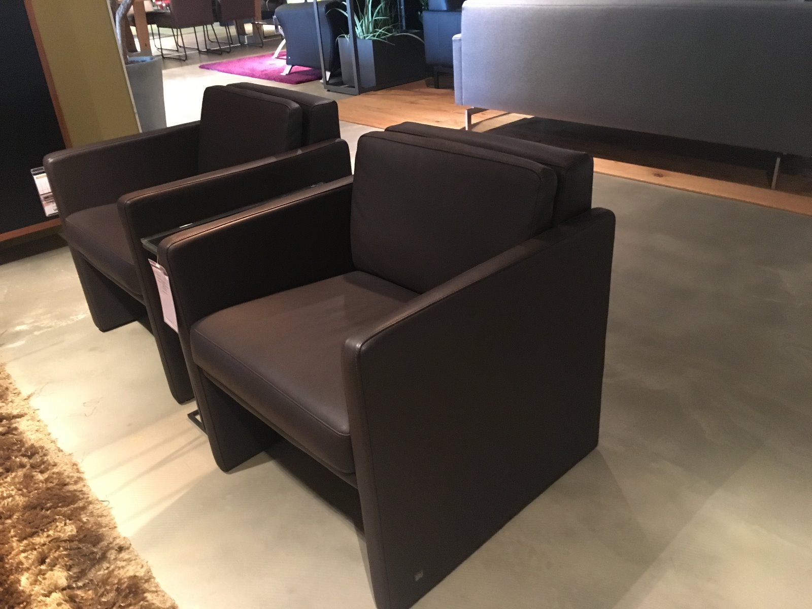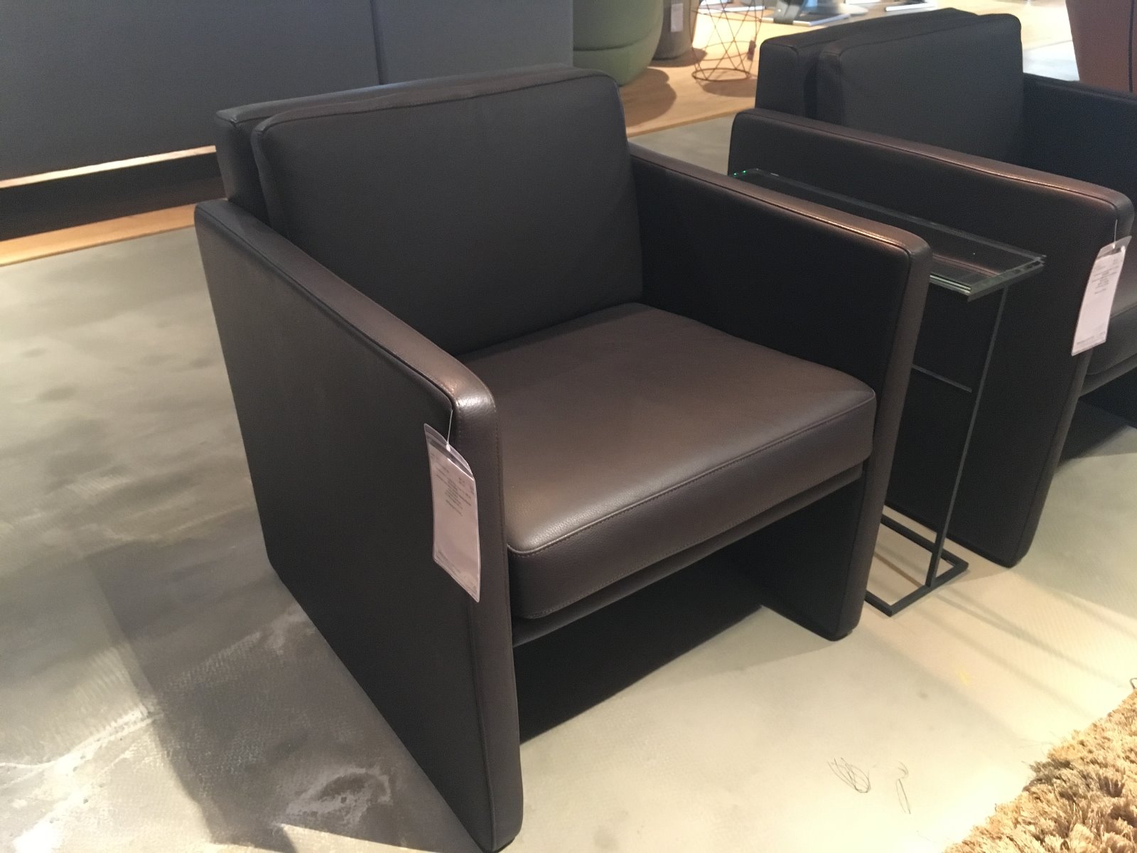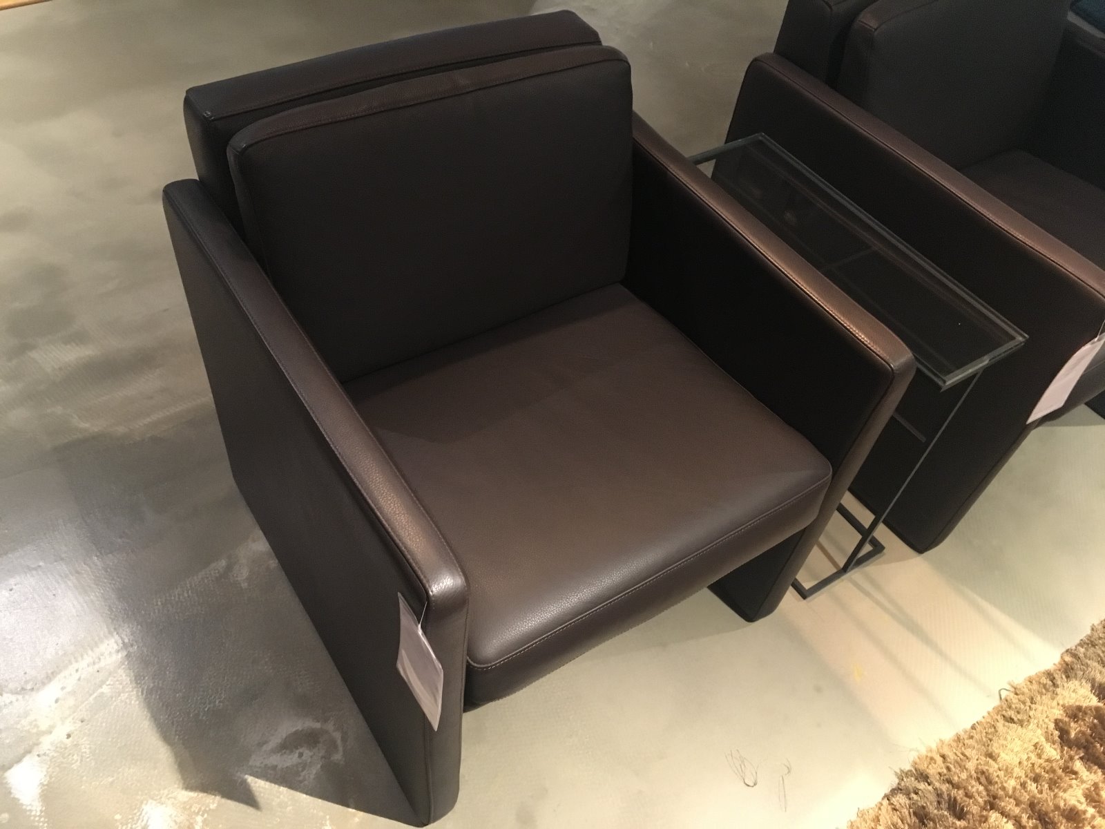 Ego is een donkerbruine, leren fauteuil van Rolf Benz.
