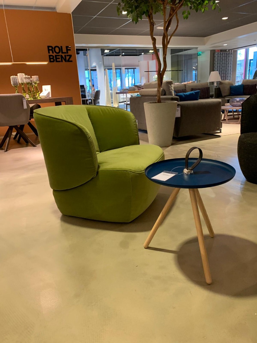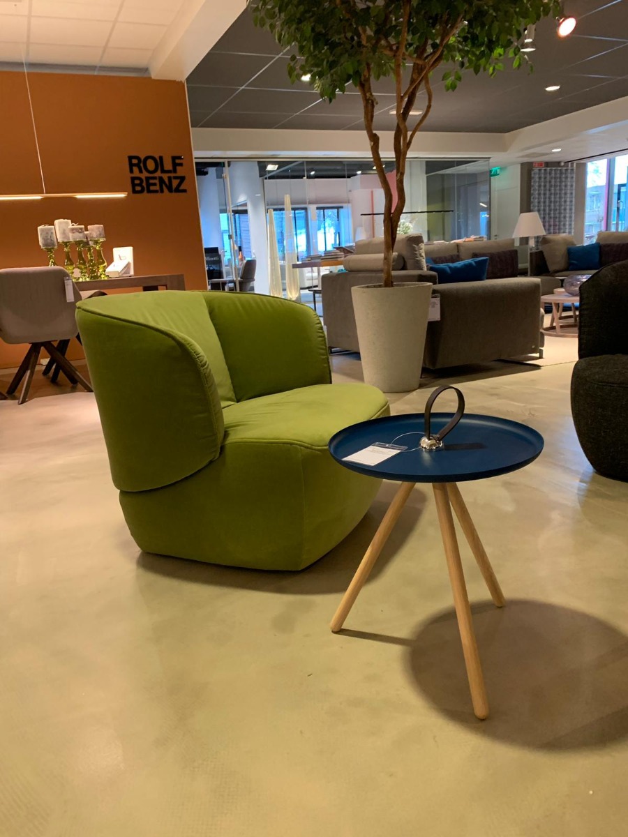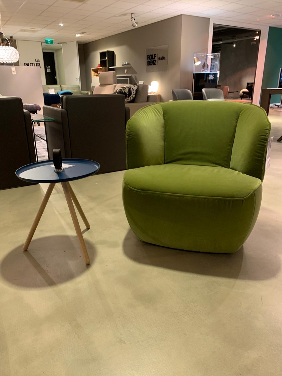 Rolf Benz fauteuil model SE 384 In stof 18.226 lichtgroen Op kunststofglijelement
