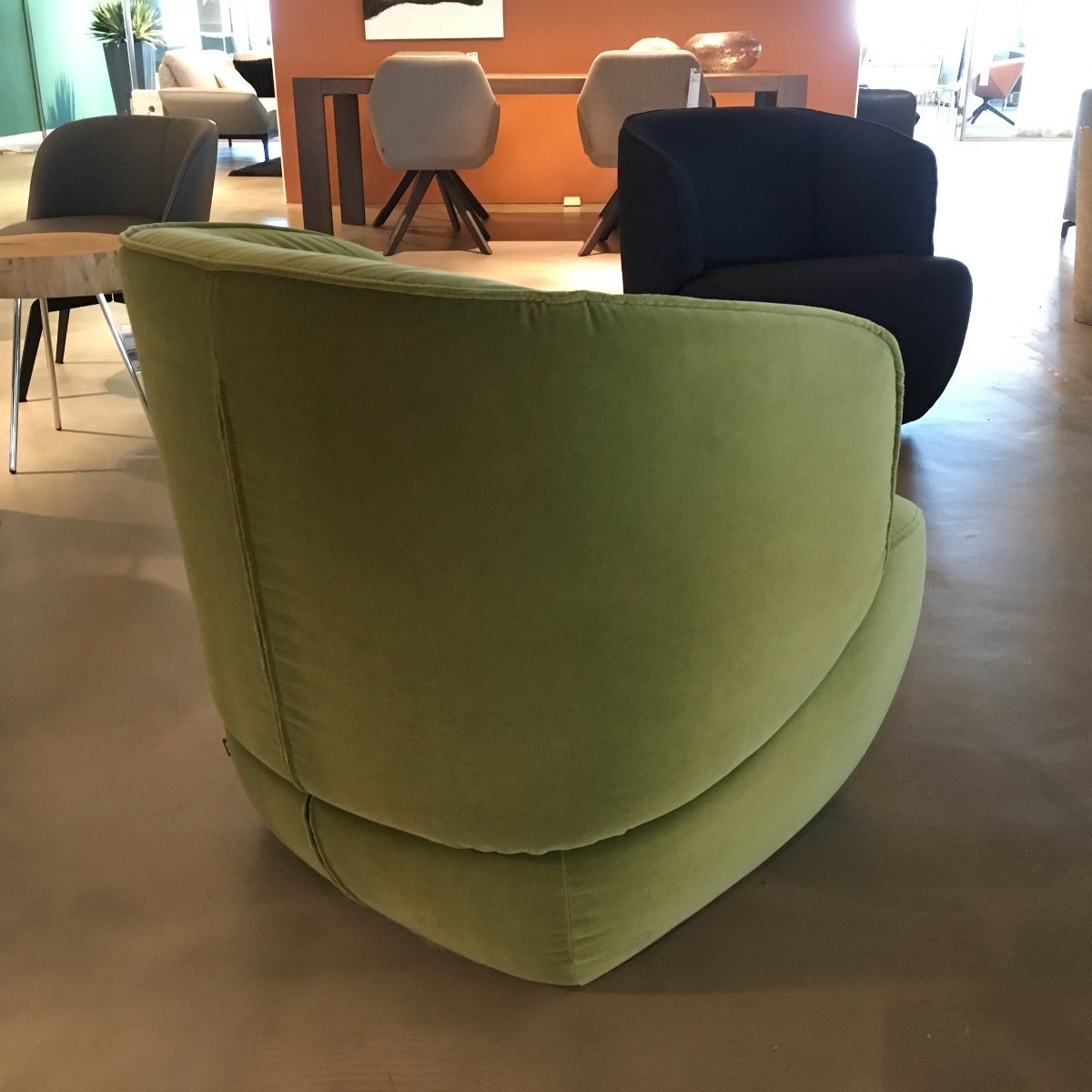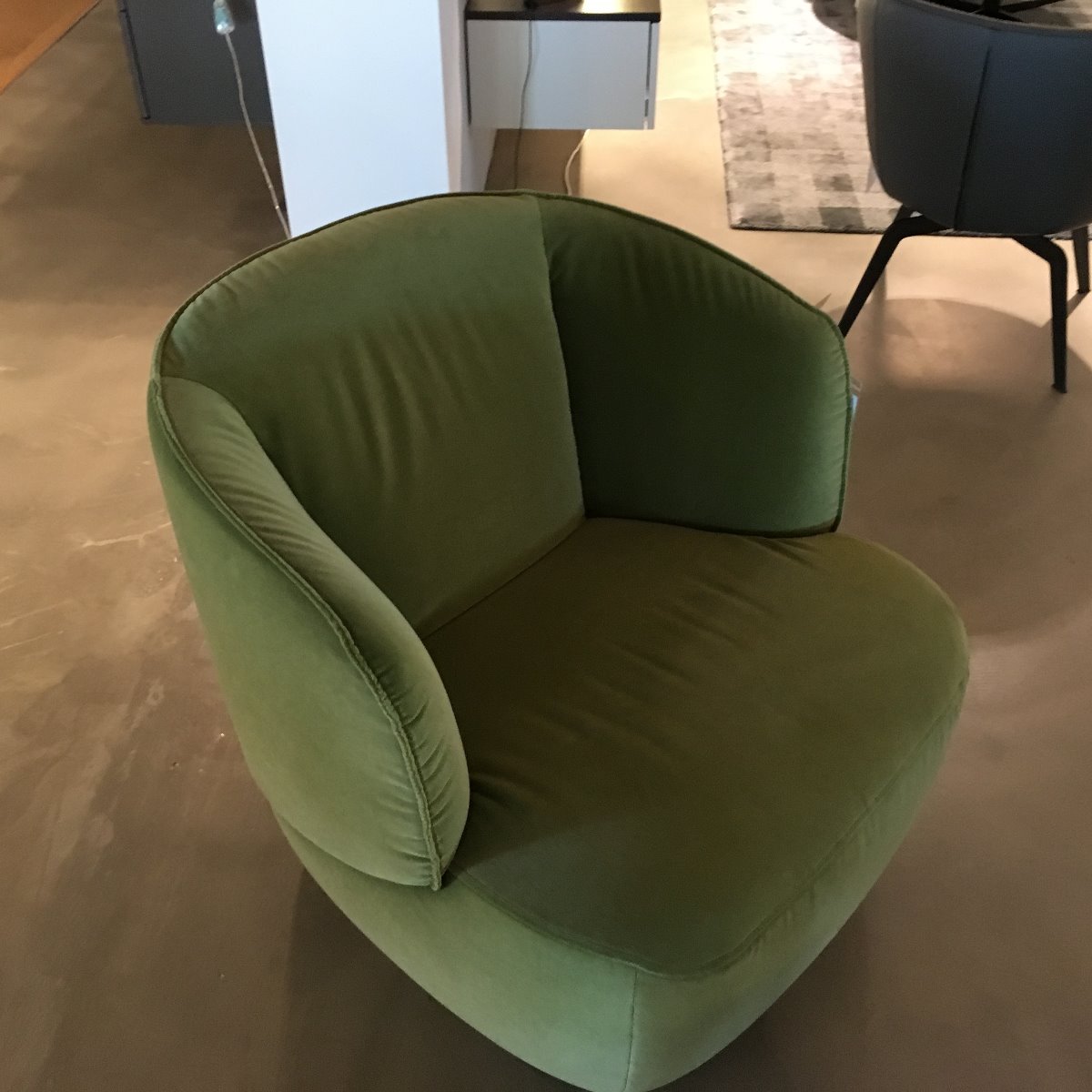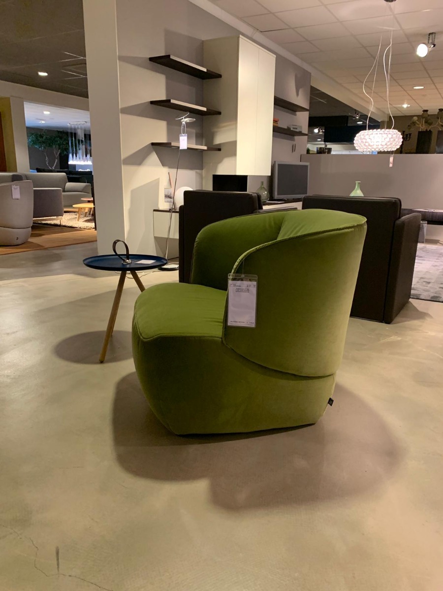 Rolf Benz fauteuil model SE 384 In stof 18.226 lichtgroen Op kunststofglijelement