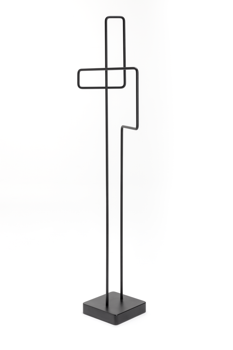 Deze elegante kapstok van staal is een hommage aan de lijntekeningen van Pablo Picasso die hij maakte zonder zijn potlood van het papier te nemen. Het resultaat is een ingetogen en sterk design. Dankzij het stevige voetstuk en de viltglijders kan de kapstok gemakkelijk van de ene naar de andere woonruimte verplaatst worden.
