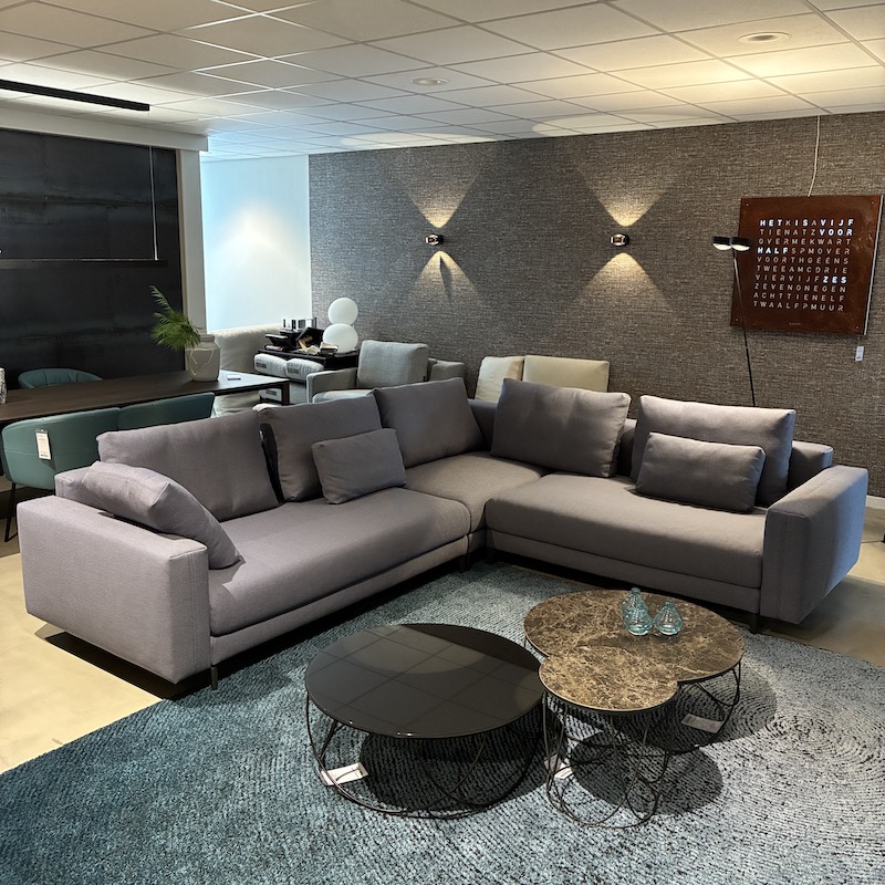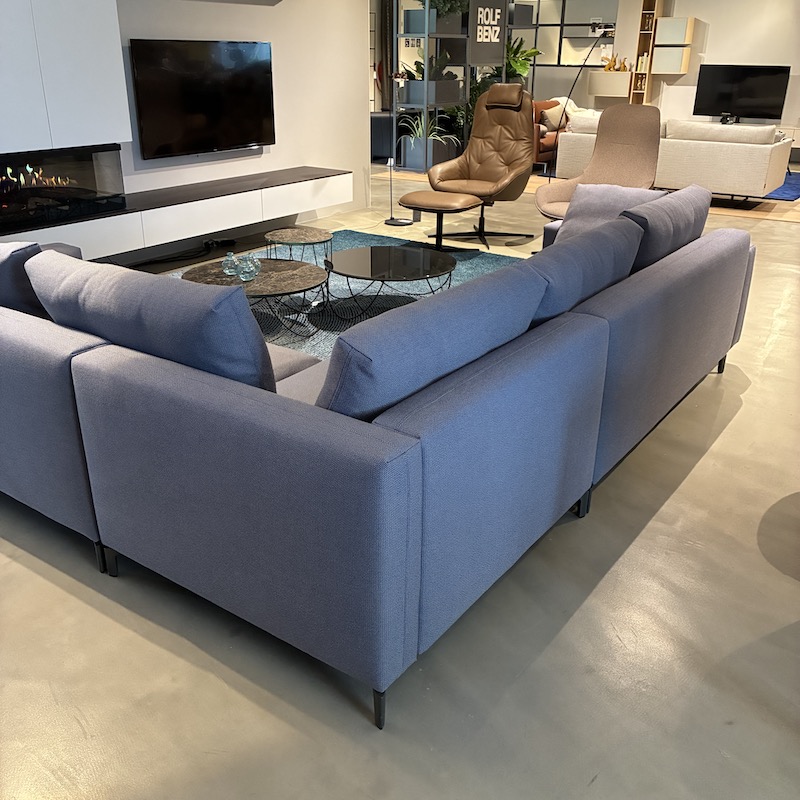 Rolf Benz Nuvola hoekbank met extra korting! Deze elegante bank in zacht grijsblauw combineert loungen en stijl met verfijnde afwerking. De subtiele kleur past in vrijwel elk interieur, terwijl de sierlijke naden het vakmanschap van Rolf Benz benadrukken. Bezoek Van Waay Interieurs, ervaar zelf het comfortabele zitcomfort en profiteer van deze aantrekkelijke outletprijs.
