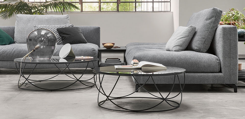 Rolf Benz Salontafel 8770, een inspirend en ruimtelijk model. Met het blad van glas en de benen zwevend in bogen eronder lijkt het alsof het blad in de lucht zweeft. Designer Annette Lang is het brein achter dit design.