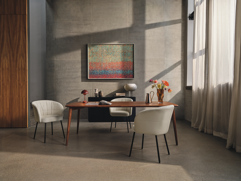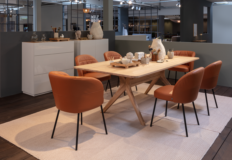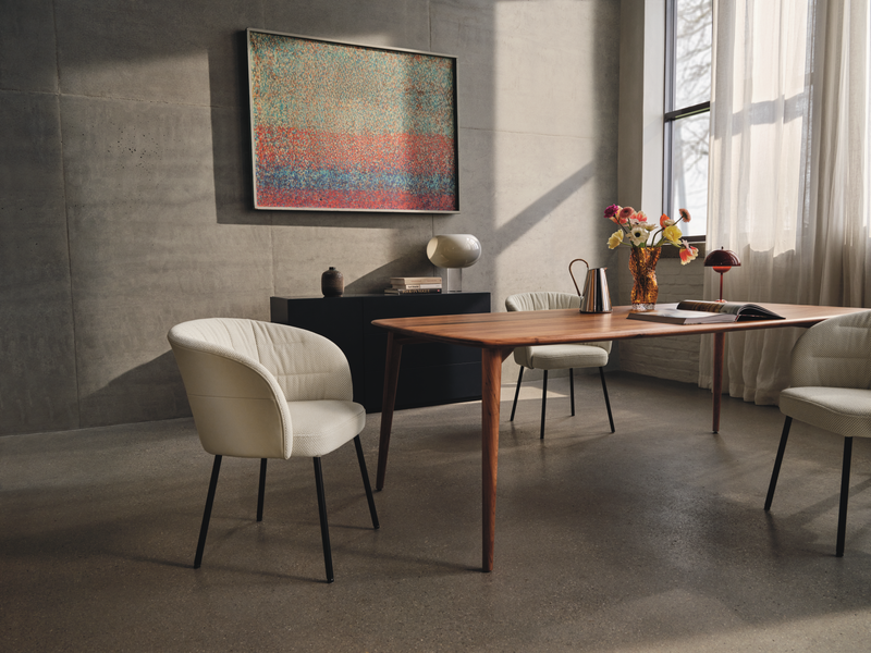 Gewoon heerlijk zacht en licht: de omsluitende vormen van Rolf Benz NOA design stoel. De fraaie plooien en stiknaden zorgen door hun zachte uitstraling voor gezelligheid aan elke tafel. Verwen uw gasten niet alleen met een exclusief avondeten, maar ook met een stoel waardoor men de tijd vergeet – Rolf Benz NOA is de perfecte plek voor ‘zittenblijvers’.