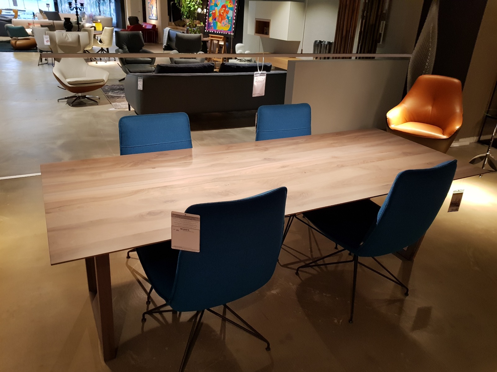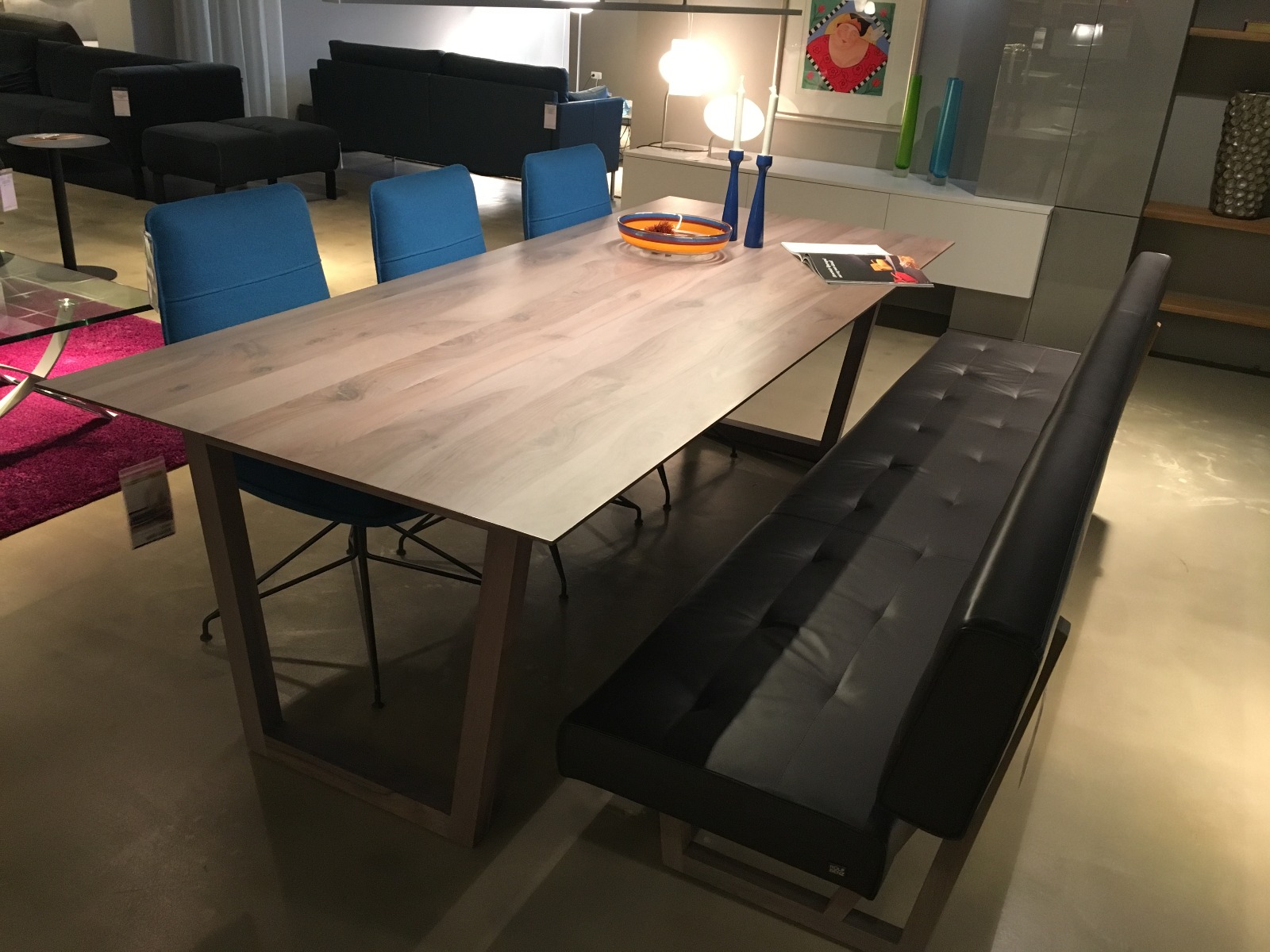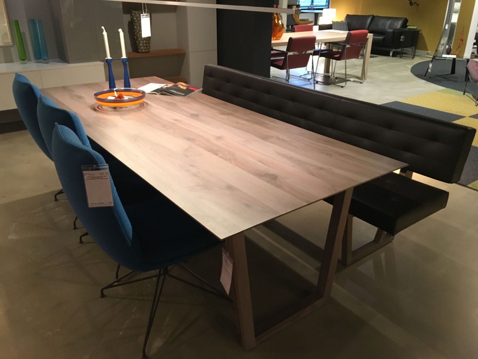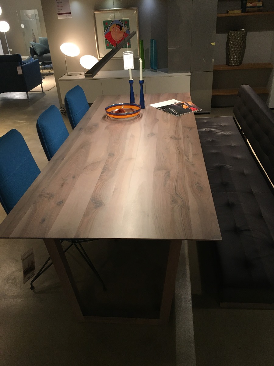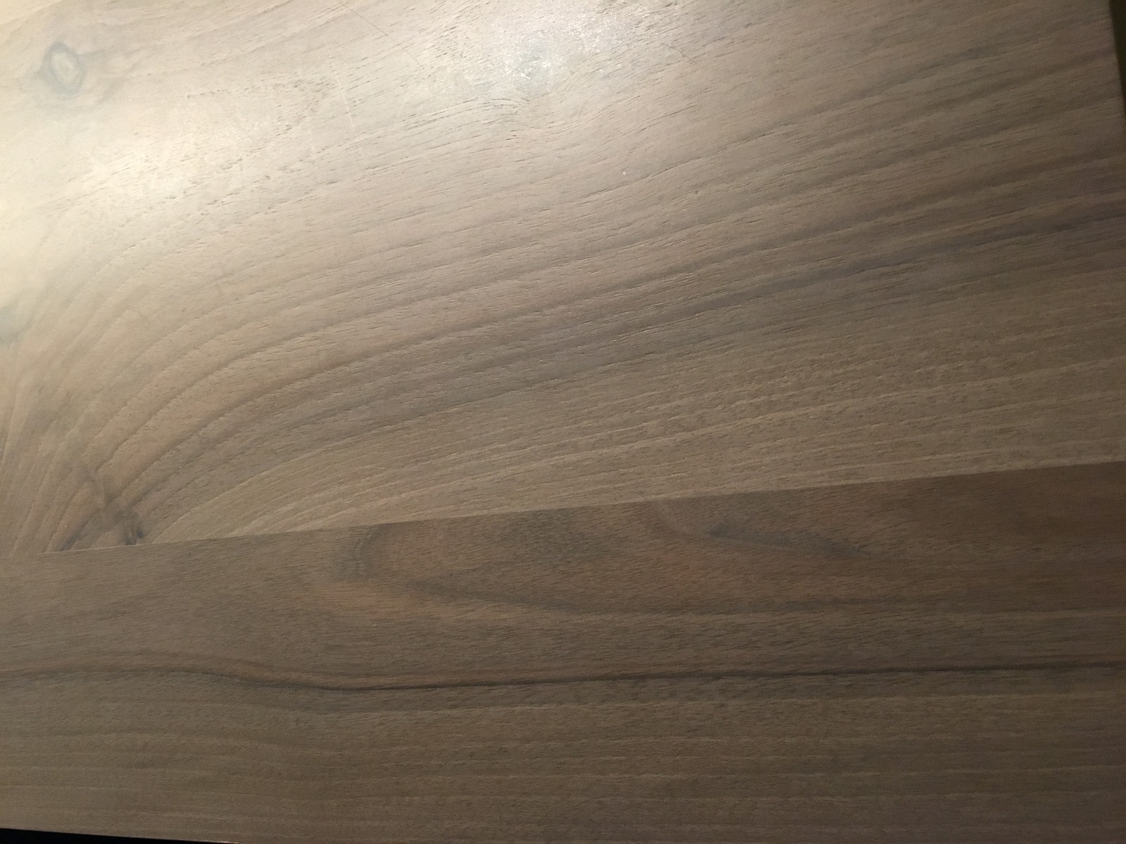 Het blad heeft een afgeschuinde rand en is van oudgrijs notenhout.