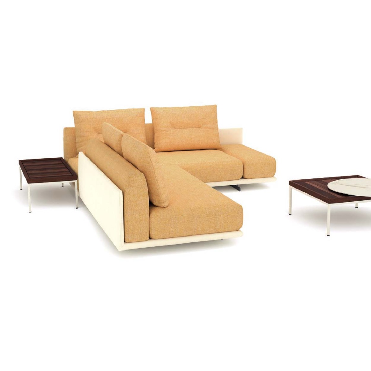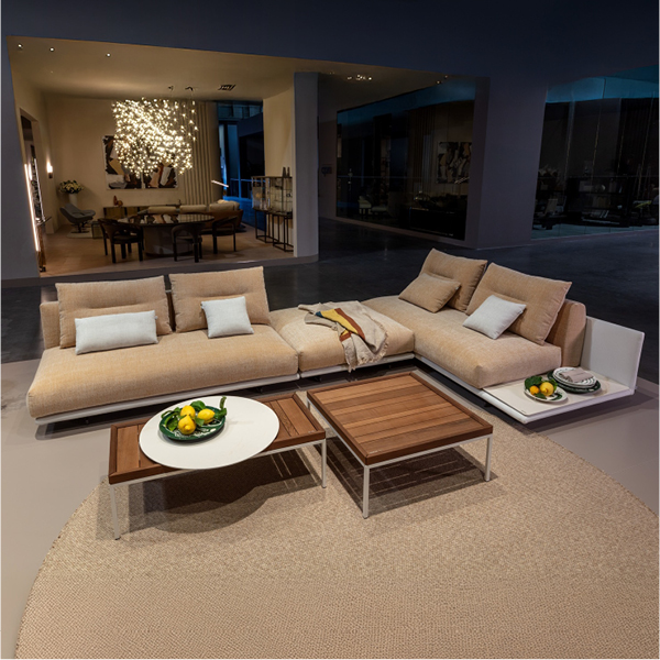 Medio september in de showroom: de Rolf Benz TAYA, een designbank voor binnen en buiten. Deze luxe outdoor loungebank combineert comfort en stijl op terras of in de tuin. Dankzij het modulaire systeem stelt u zelf uw ideale opstelling samen met losse elementen en flexibele, weerbestendige kussens. Kies uit diverse stoffen en kleuren, afgestemd op langdurig buitengebruik. Voor extra luxe zijn keramische aflegvlakken in Calacatta of Black Coffee Marble beschikbaar, perfect voor een drankje of boek binnen handbereik.