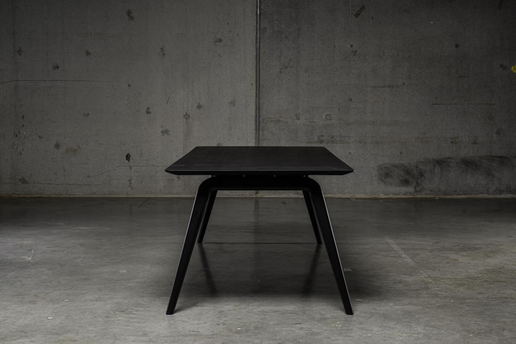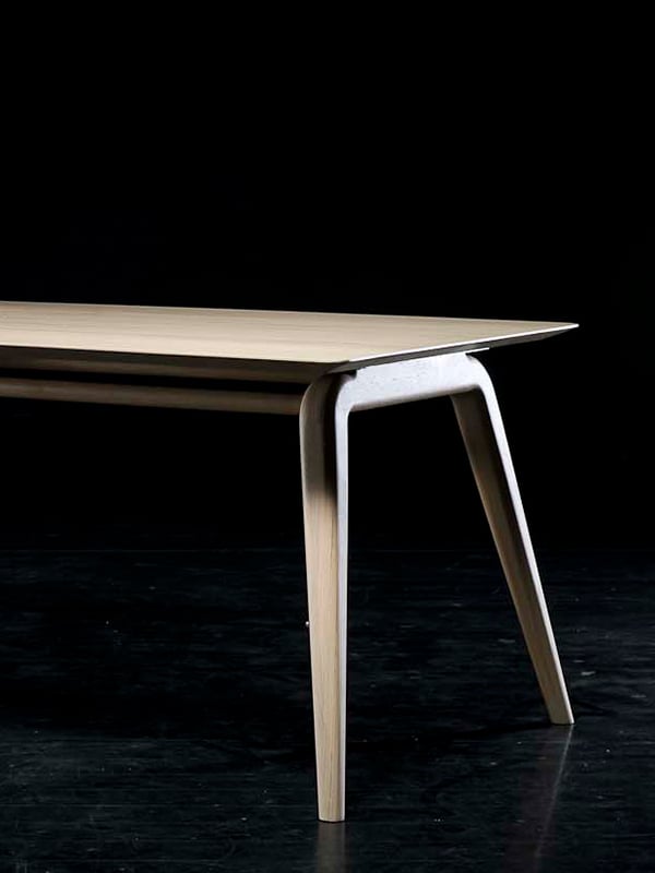 Het idee voor de eetkamertafel Pitcher is ontstaan op de honkbal tribune. U vindt de vloeiende beweging waarmee de pitcher in één rechte lijn de bal gooit, terug in het ontwerp van deze tafel.