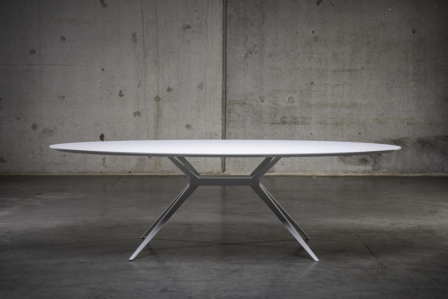 De zwaan: een elegante vogel, die als toonbeeld heeft gestaan voor het ontwerp van deze tafel. De design tafel is in elke gewenste maat leverbaar, zowel in lengte als in breedte.