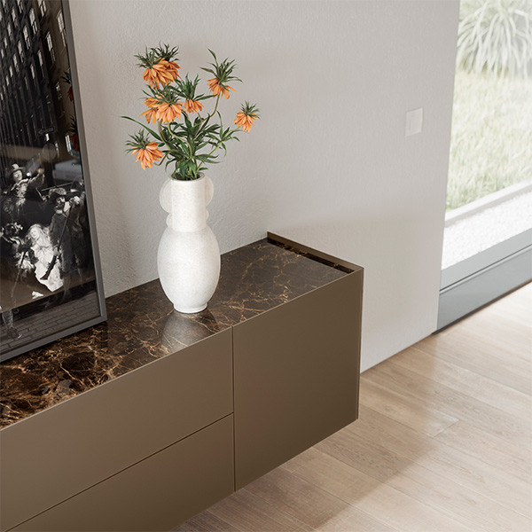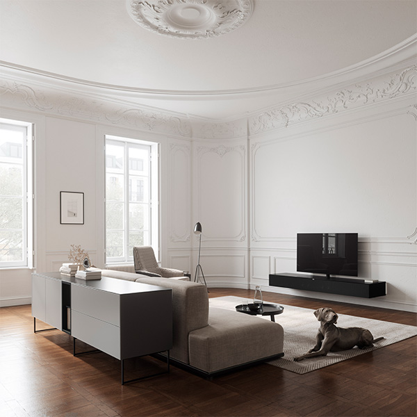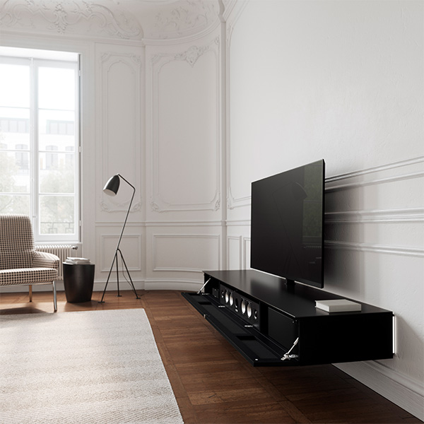 Het eerste tv wandmeubel met ruggengraat. Spectral Ameno is de nieuwe Spectral TV standaard voor wandmeubels waarbij alles kabels en randapparatuur vernuftig worden weggewerkt. Liever horen dan zien, dankzij de verborgen speakers in het wandmeubel. Ameno heeft plaats voor alles, en een keuze vrijheid aan verschillende materialen zoals hout, keramiek, aluminium en glas. Ontwerp uw eigen Ameno zwevend wandmeubel tot in detail.