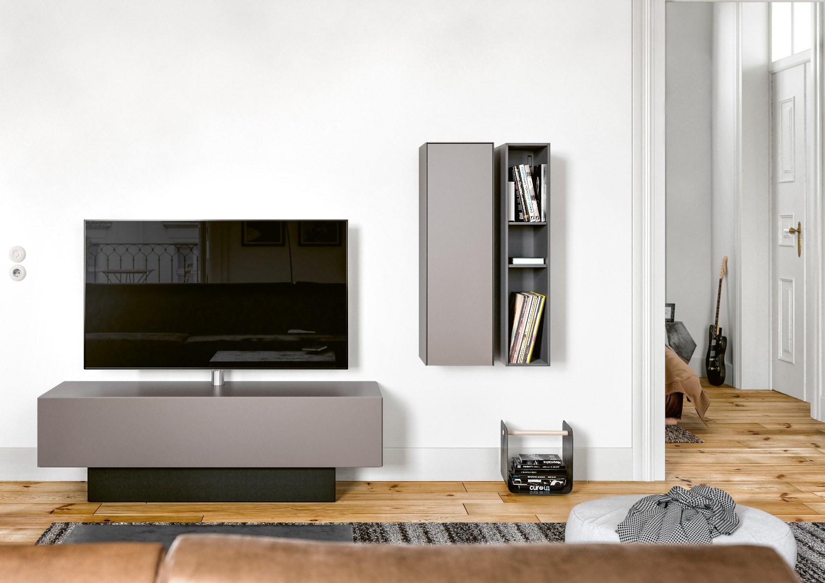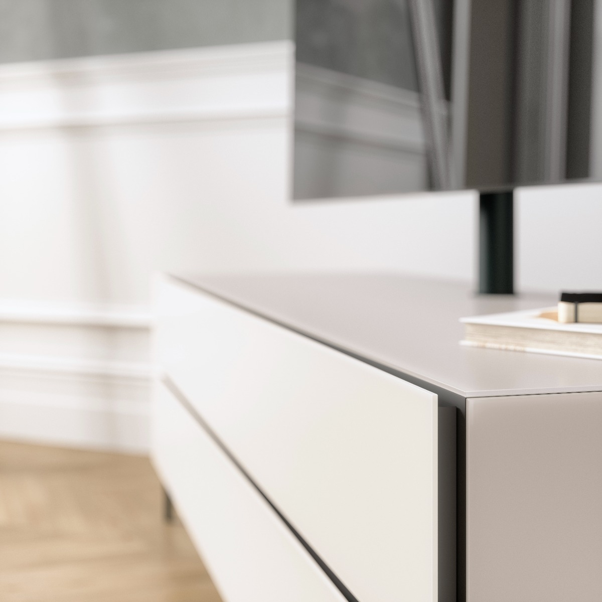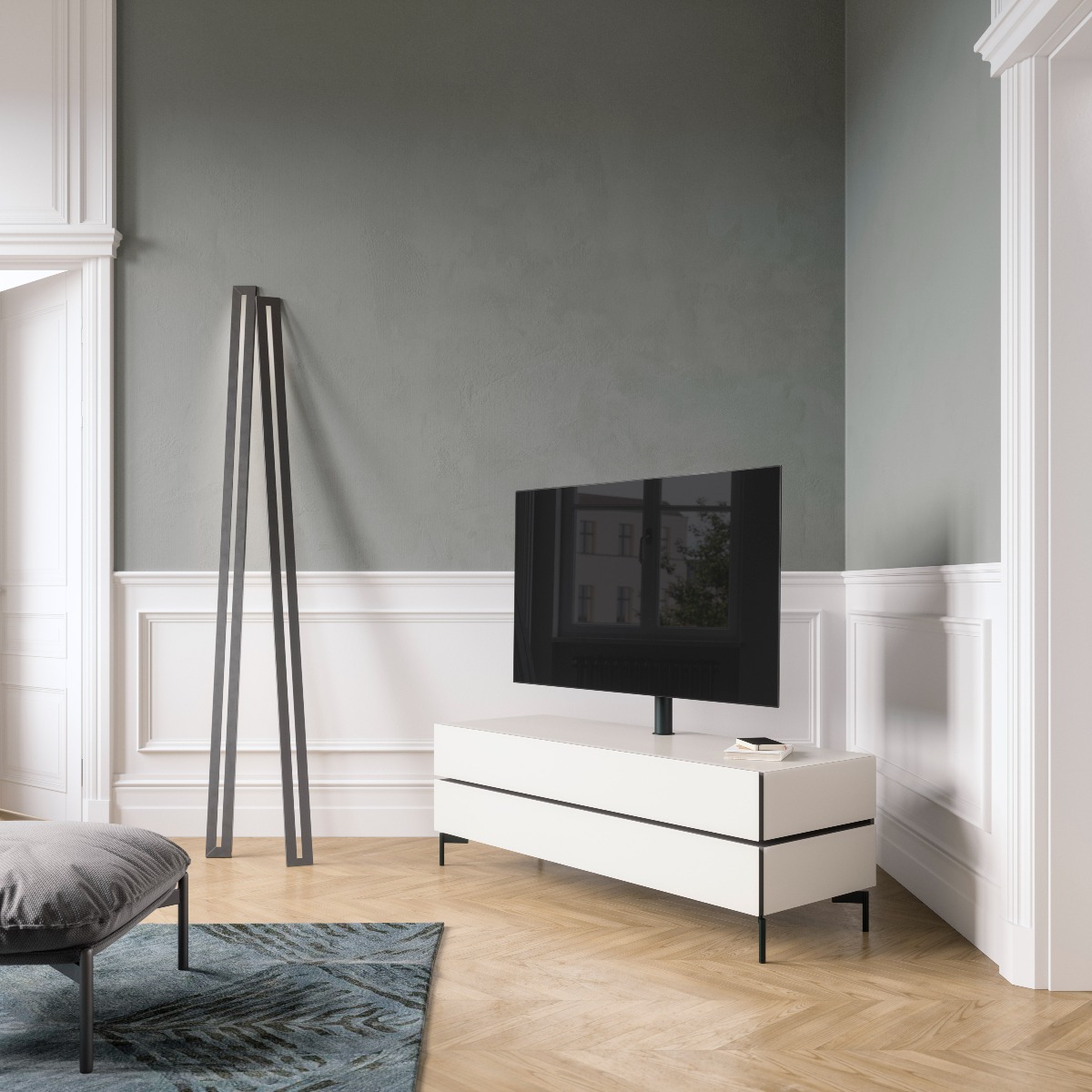 Ervaar een leven met Spectral Brick. Het eerste tv meubel met het geluidsysteem verborgen in de sokkel. Terwijl u de techniek achter het geluid niet ziet, kunt u wel genieten van een geweldige homecinema ervaring. Achter de luxe glasfronten is ruimte in overvloed voor de verschillende randapparatuur. Karakteristiek voor de Spectral Brick is de teruggetrokken sokkel. Hierdoor lijkt het meubel boven de grond te zweven. Naast de standaard, zwarte sokkel is er ook een gepolijste sokkel in edelstaal (RVS). Is dit niet indrukwekkend genoeg? U kunt de sokkel ook uitvoeren met het BRA1 soundsysteem, of het Bose systeem.