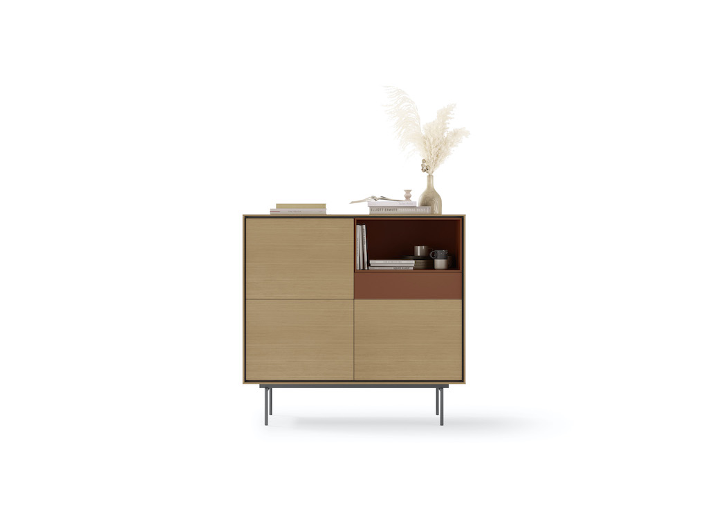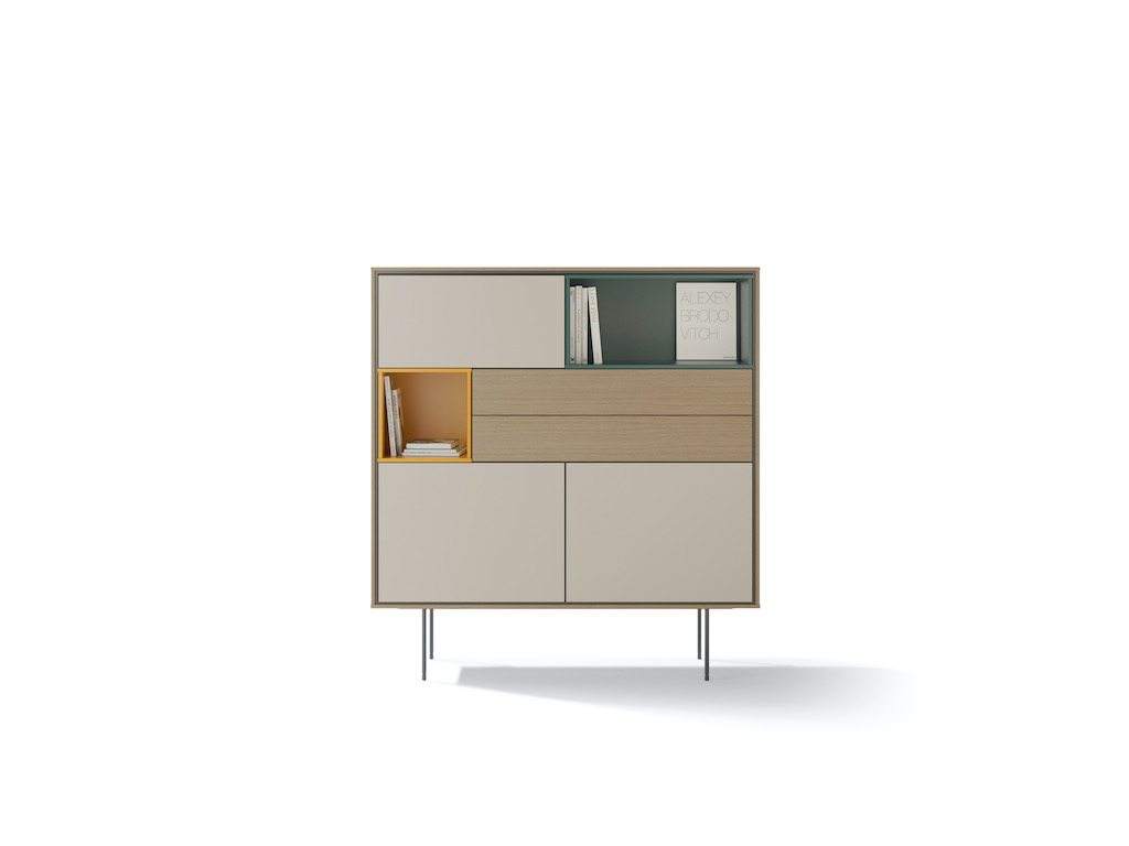 De Treku aura: een verfijnde kastenserie met retro look waar u alle kanten mee op kunt. Omdat de kast compleet zelf samengesteld kan worden maakt het naast een schoonheid, een virtuoos die praktisch en stijlvol ultiem combineert. De kast die uit verschillende geometrische elementen, kleuren en materialen is opgebouwd biedt ruimte voor uw dagelijkse benodigdheden en toont daarbij persoonlijkheid en verbinding in uw interieur. Onze interieur deskundigen helpen u graag met alle keuzeopties voor uw Treku Aura.