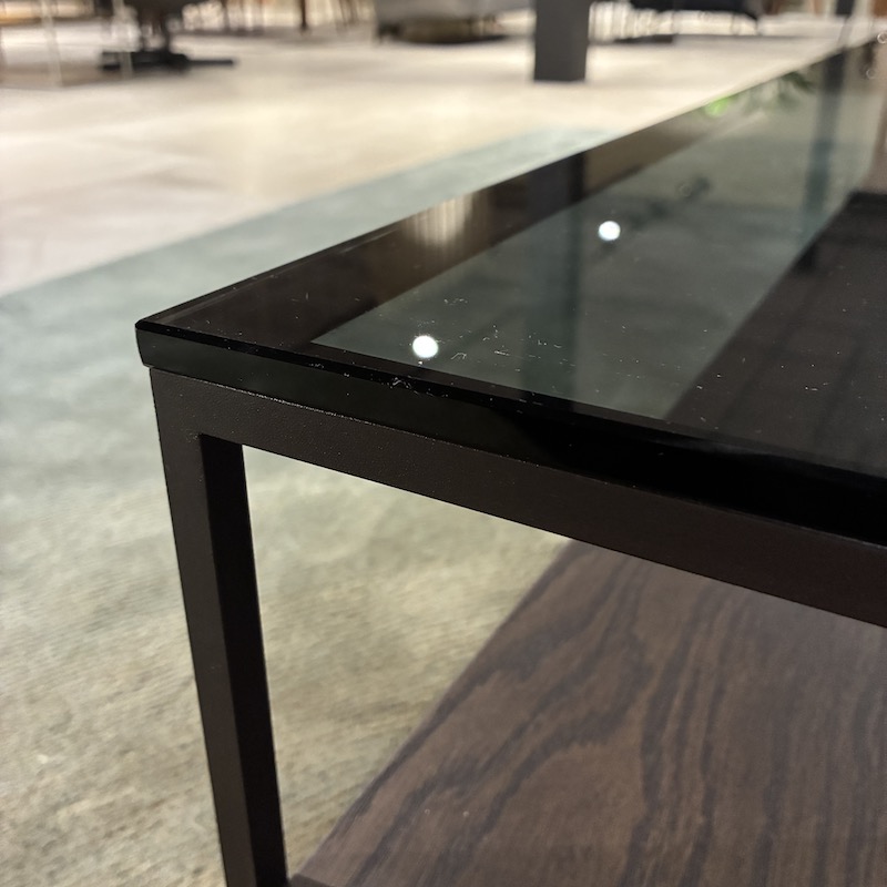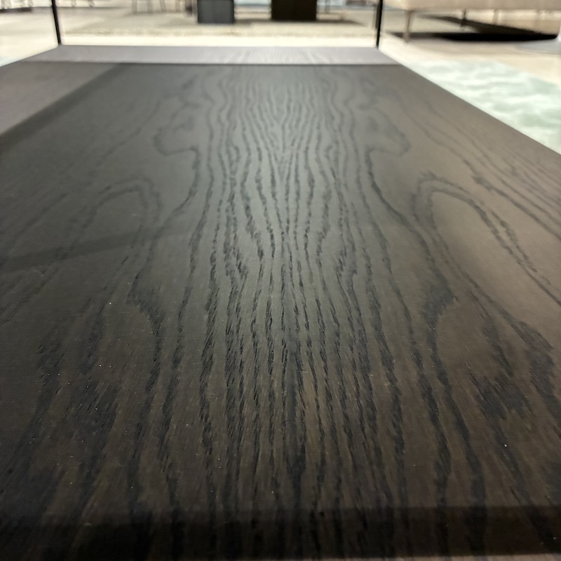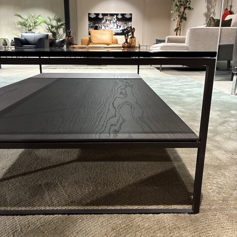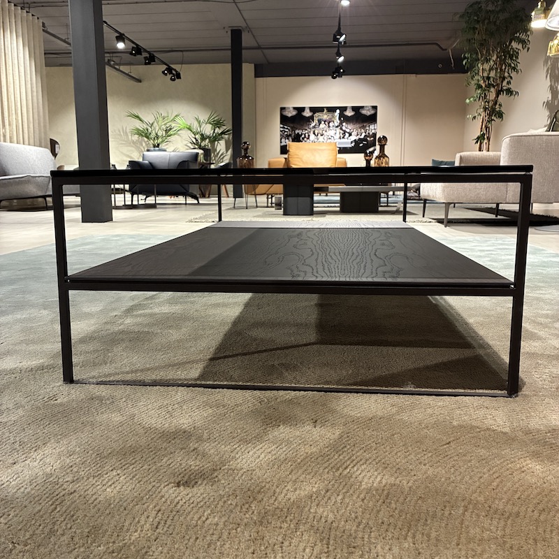 Deze Van Beek Cubic salontafel is een stijlvolle en stoere toevoeging aan een moderne zithoek. Het zwart getinte glazen blad in combinatie met het grijs/bruin eiken fineer onderblad geeft de tafel een luxe uitstraling, terwijl het donkere frame het geheel mooi strak houdt. Een strakke salontafel waar u steeds opnieuw plezier aan beleeft. Nu met een mooie korting beschikbaar in onze showroom.