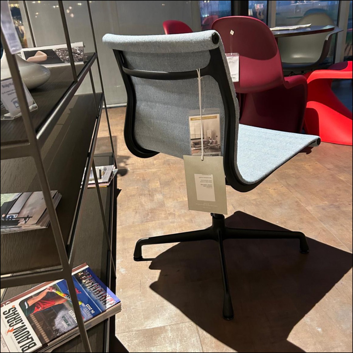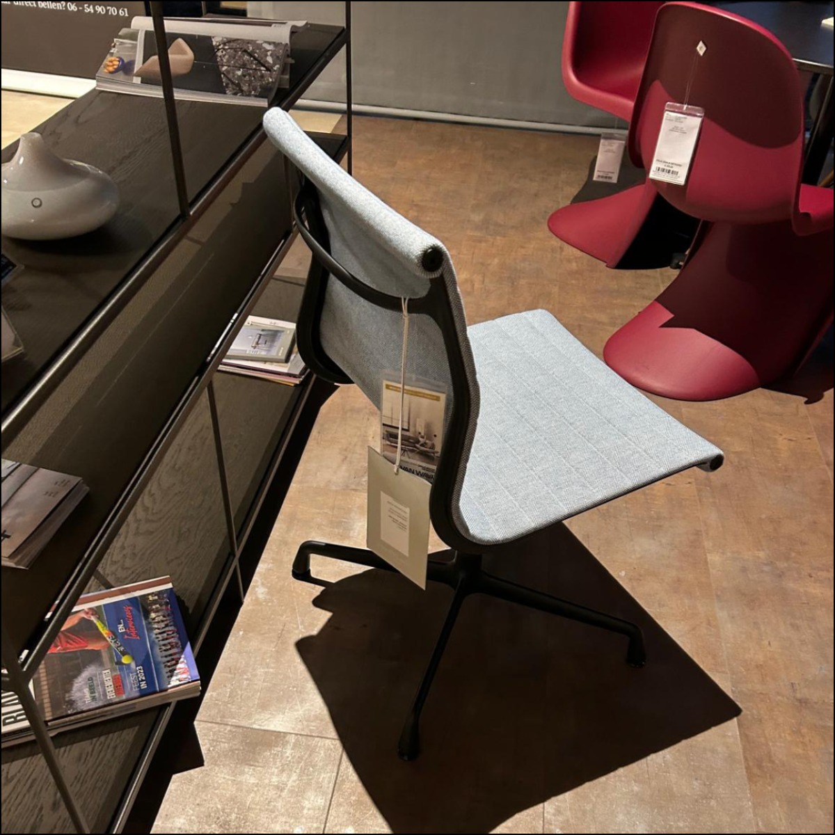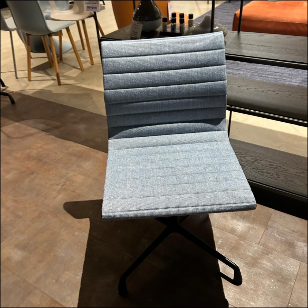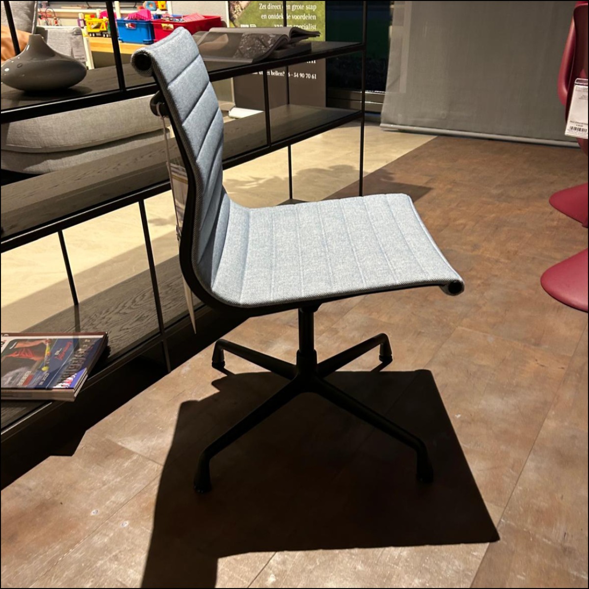De Vitra EA 101 Aluminium Chair, ontworpen door Charles en Ray Eames in 1958 is een klassieker in de Eames-collectie. De EA 101 is zowel stijlvol als praktisch en het tijdloze ontwerp maakt deze bureaustoel een iconisch meubelstuk. Deze mooie Aluminium Chair met lichtblauwe bekleding en zwart onderstel is nu voor een outlet prijs beschikbaar in onze showroom!