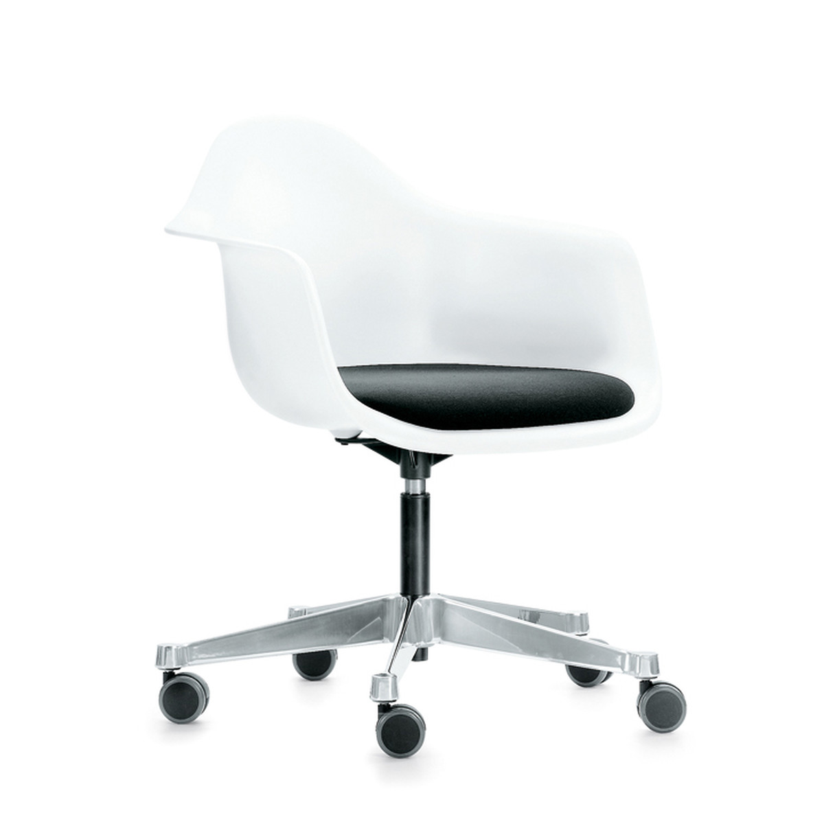 Dankzij de grote keuze aan onderstellen, kunnen de Plastic Chairs van Charles en Ray Eames in uiteenlopende interieurs gebruikt worden: de Pivot Armchair Cast Base on Castors (PACC) is bijvoorbeeld ideaal voor thuiskantoren dankzij het draaibare onderstel dat in hoogte verstelbaar is. Dankzij de kleur- en bekledingsopties is het mogelijk om stoelen samen te stellen die in heel diverse interieurs passen.